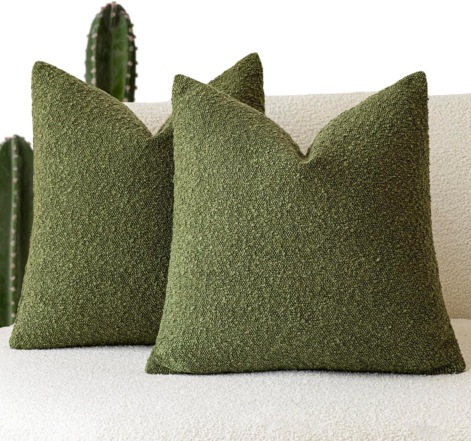 Foindtower Set of 2, Decorative Textured Boucle Throw Pillow Covers Accent Solid Pillow Cases Neutral Soft Cozy Couch Cushion Case for Chair Sofa Bedroom Living Room Home Decor 26 x 26 Inch Green