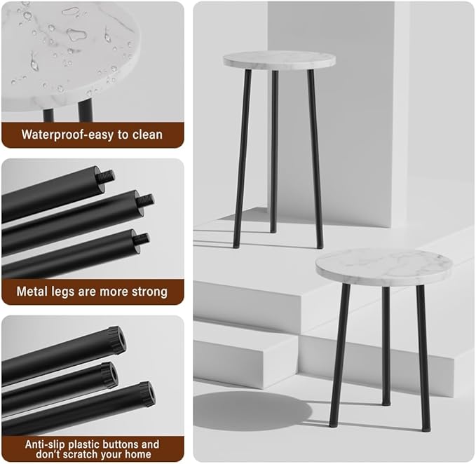 Plant Stand Indoor Tall: Corner Wood Plant Stand 2 Pack Mid Century Modern Decor - Small Round Plant Table for Indoor Plants - Outdoor Plant Holder for Patio Living Room Bathroom Office (White Marble)