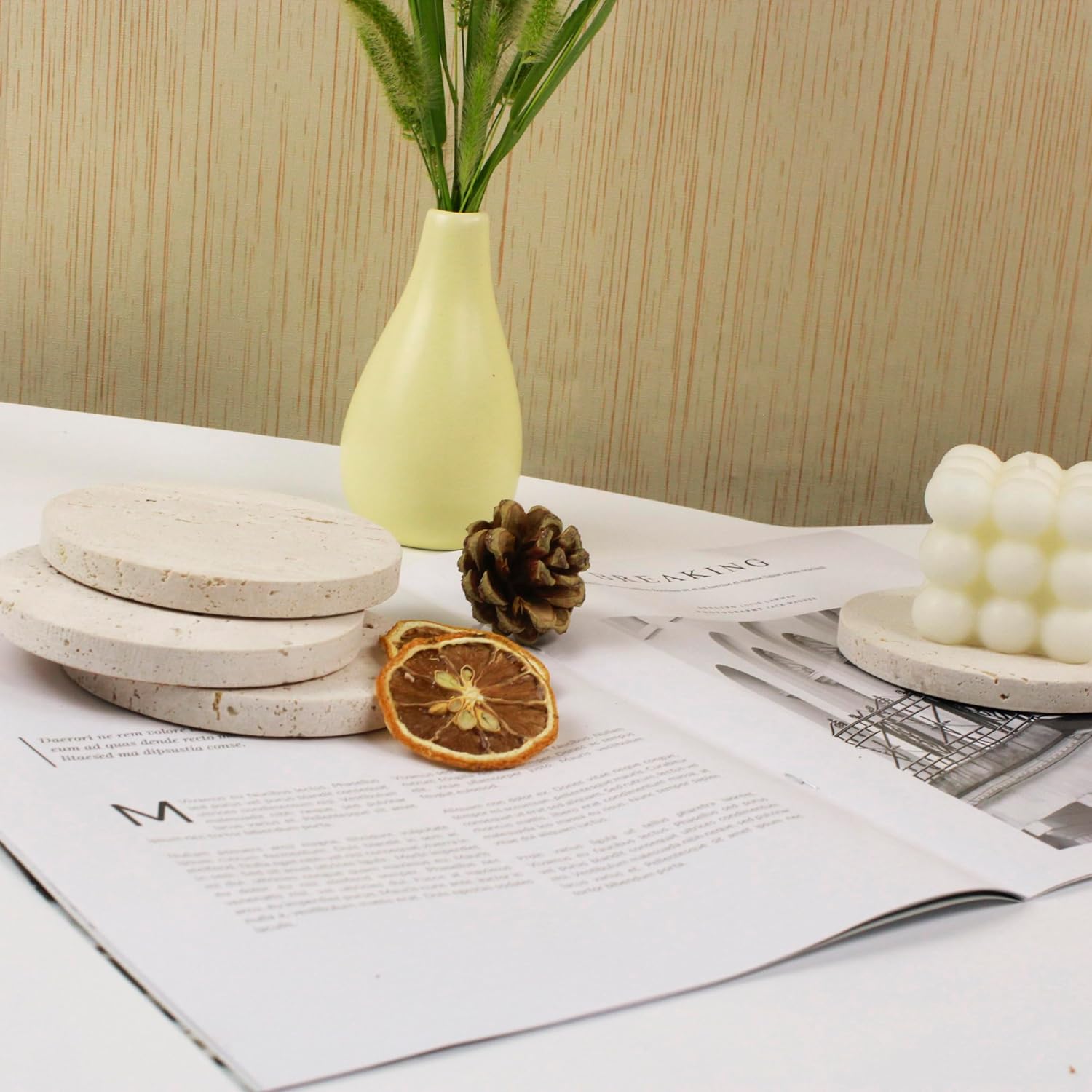 - Versatile Use: Whether it's for a cup of coffee, a refreshing drink, or a delicate wine glass, these stone coasters offer a versatile solution for protecting your table from condensation and heat