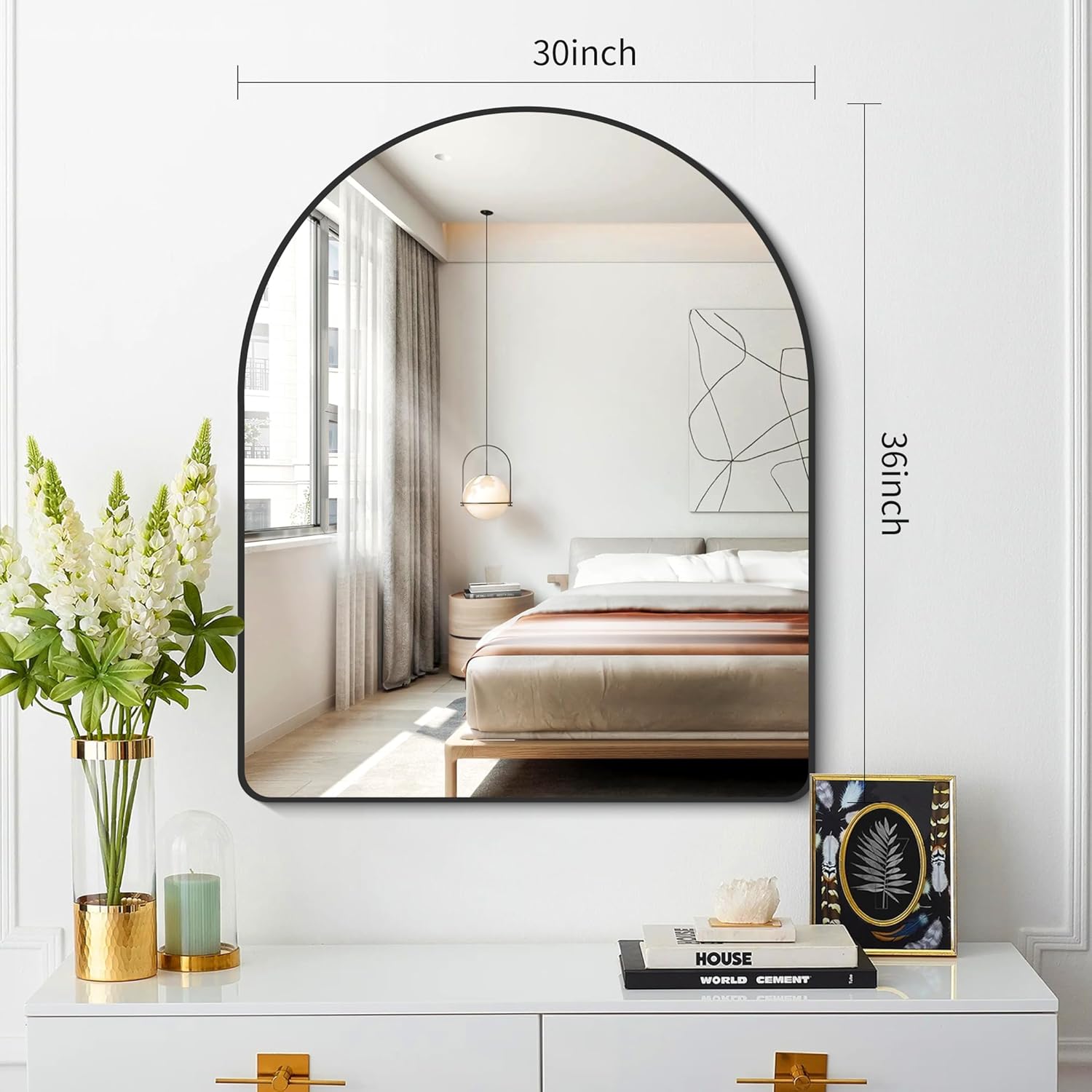 FORBATH Arched Bathroom Mirror 30x36 Inch, Bathroom Mirror Wall Mounted Modern Black Aluminum Frame Decor Dresser Mirror for Bedroom Living Room Entryway, Hanging or Leaning Against Wall