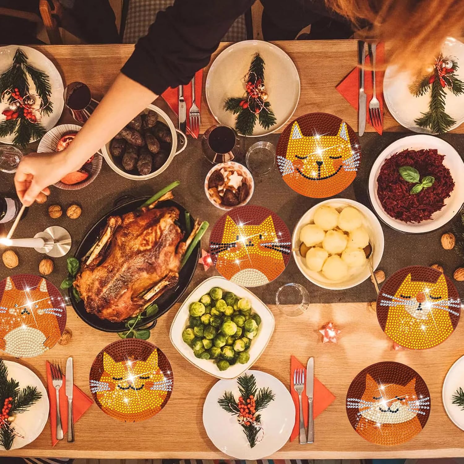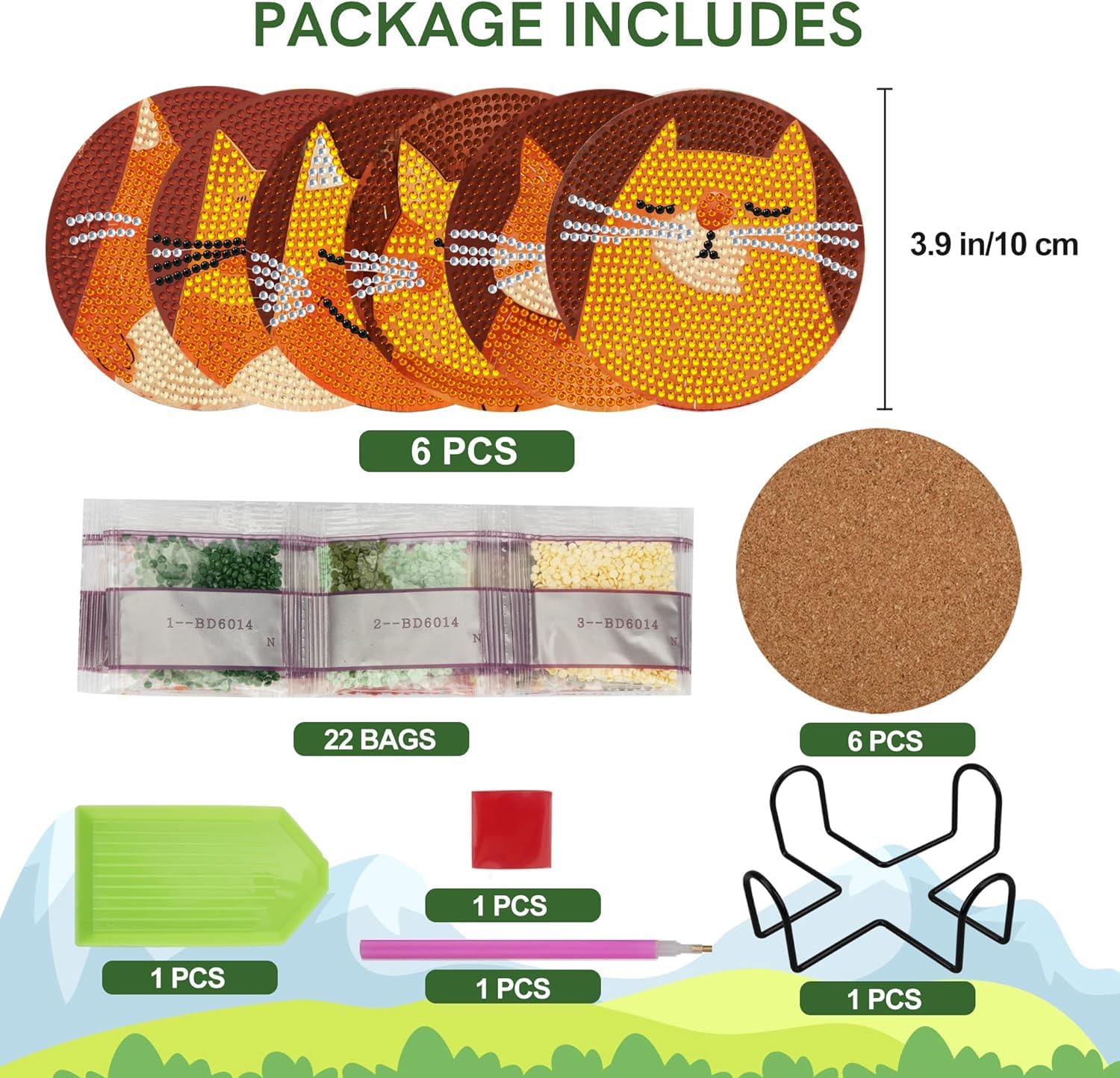 EWJRNSF 6 PCS Diamond Painting Coaster Set - Small Diamond Painting Coasters Kit for Beginners and Adults - Art Craft Supplies Item Cat