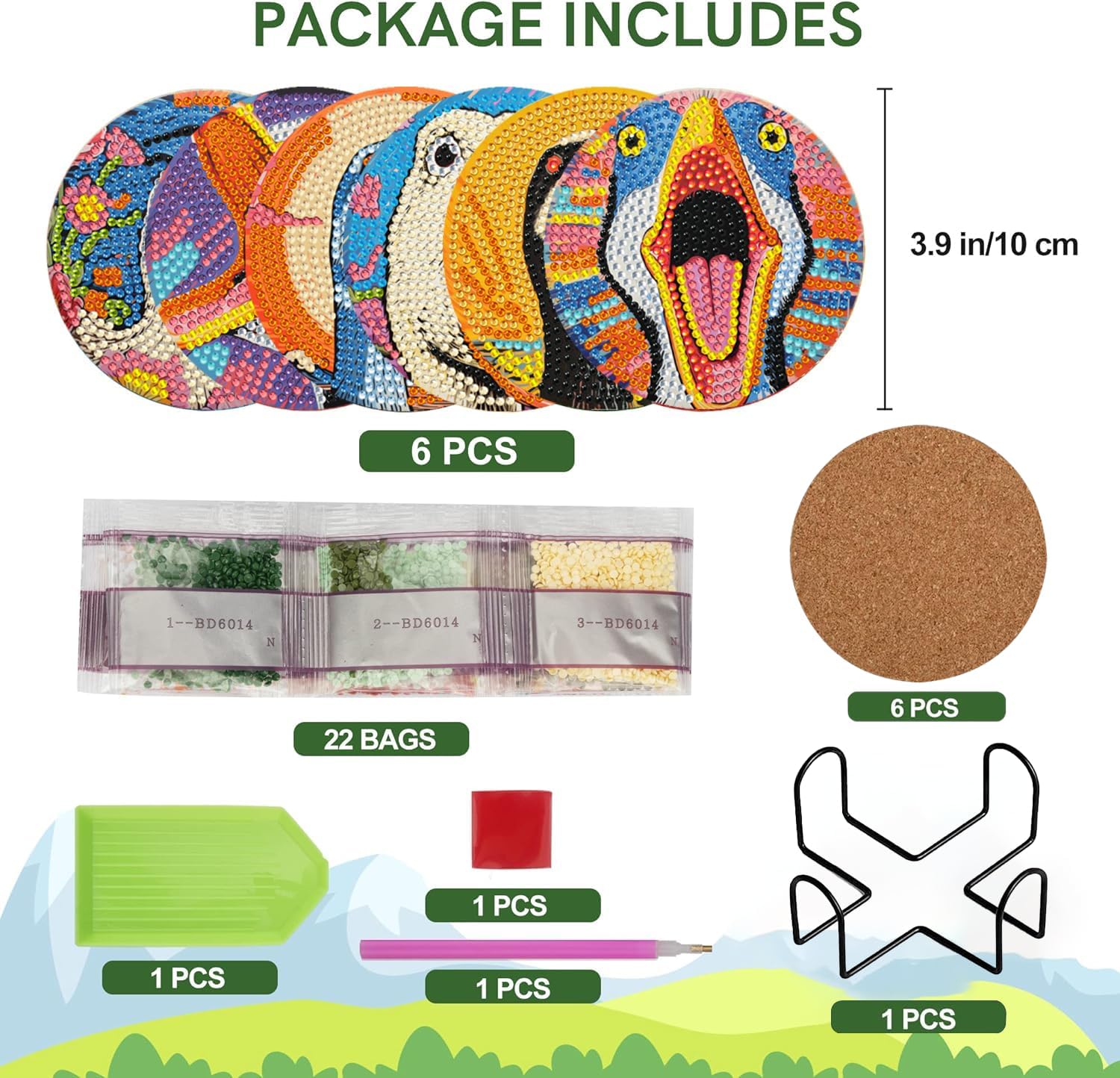 - Diamond Art Kits for Adults: This kits includes 6 pcs diamond painting coasters kits and cork pads, diamond dots arts, diamond painting pens, red glue clay and plastic trays. For each kit we'll provide 30% diamond more than need this kit
