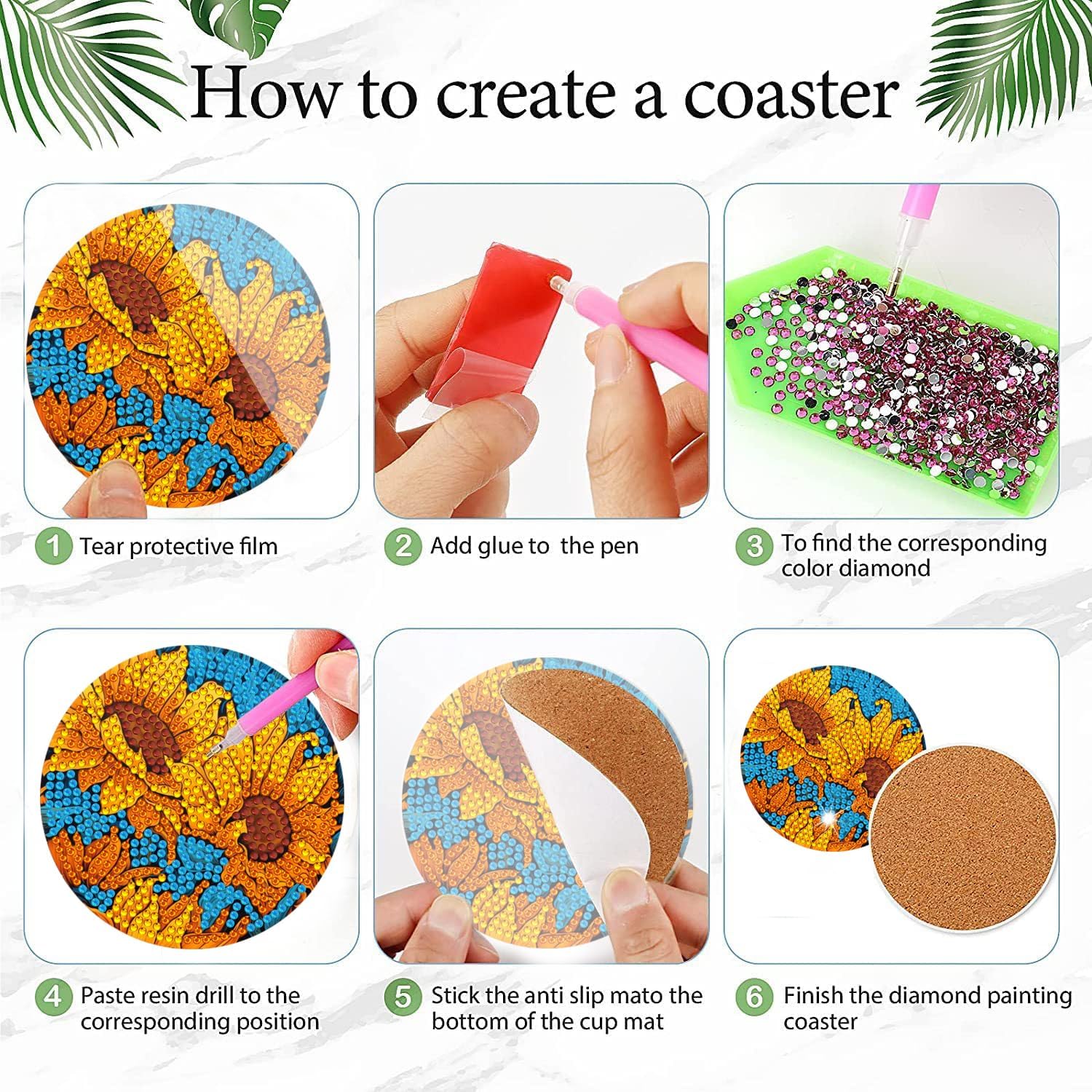 - Easy To Use Diy Enjoyment: Diamond painting coasters packs designed for both beginners and experienced adults, this diamond painting kit for adults is straightforward and simple to use. just follow the provided instructions, peel off the protective film, apply the diamond dots for adults to the numbered sections on the coaster, and enjoy creating beautiful diamond paintings coasters kit without worrying about the diamonds falling off