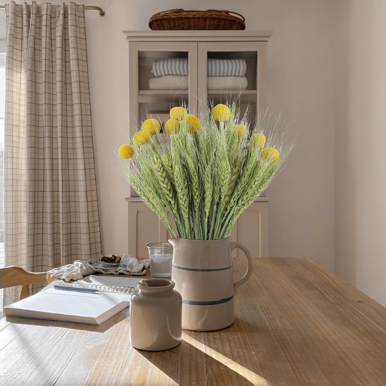 CISDUEO 60 Pcs Dried Wheat Stalks Bundle Natural Dried Flowers Craspedia Billy Balls Flowers Billy Buttons Dried Floral Bouquet Arrangements for Wedding Party Table Centerpiece Decor Farmhouse DIY