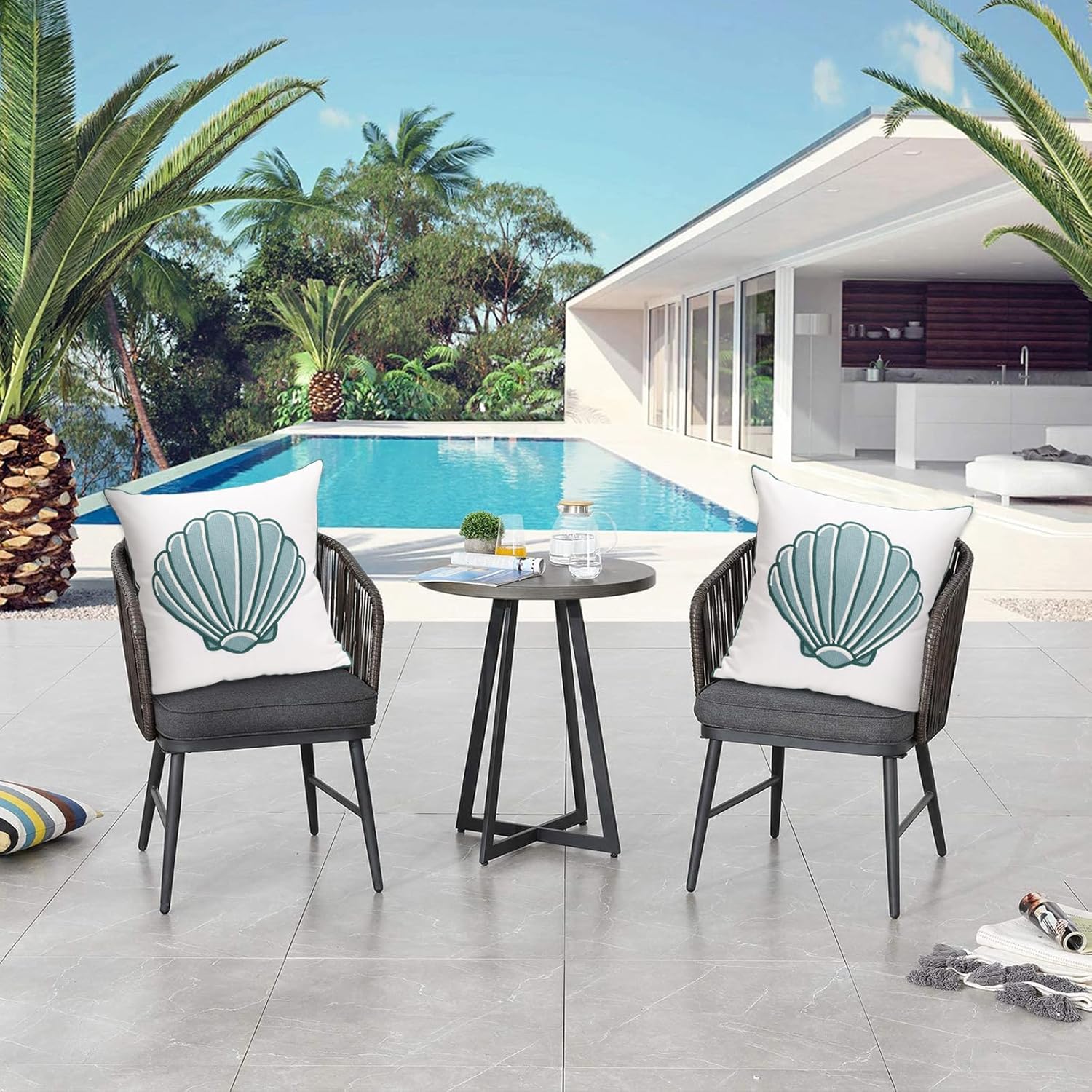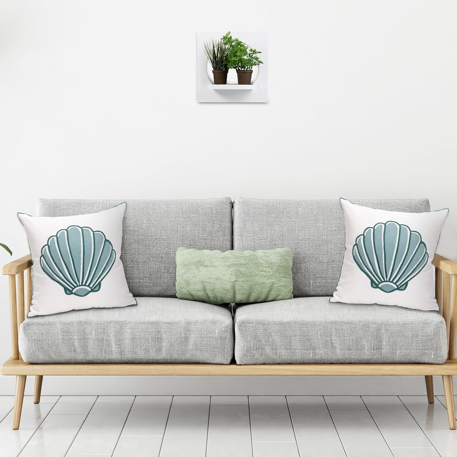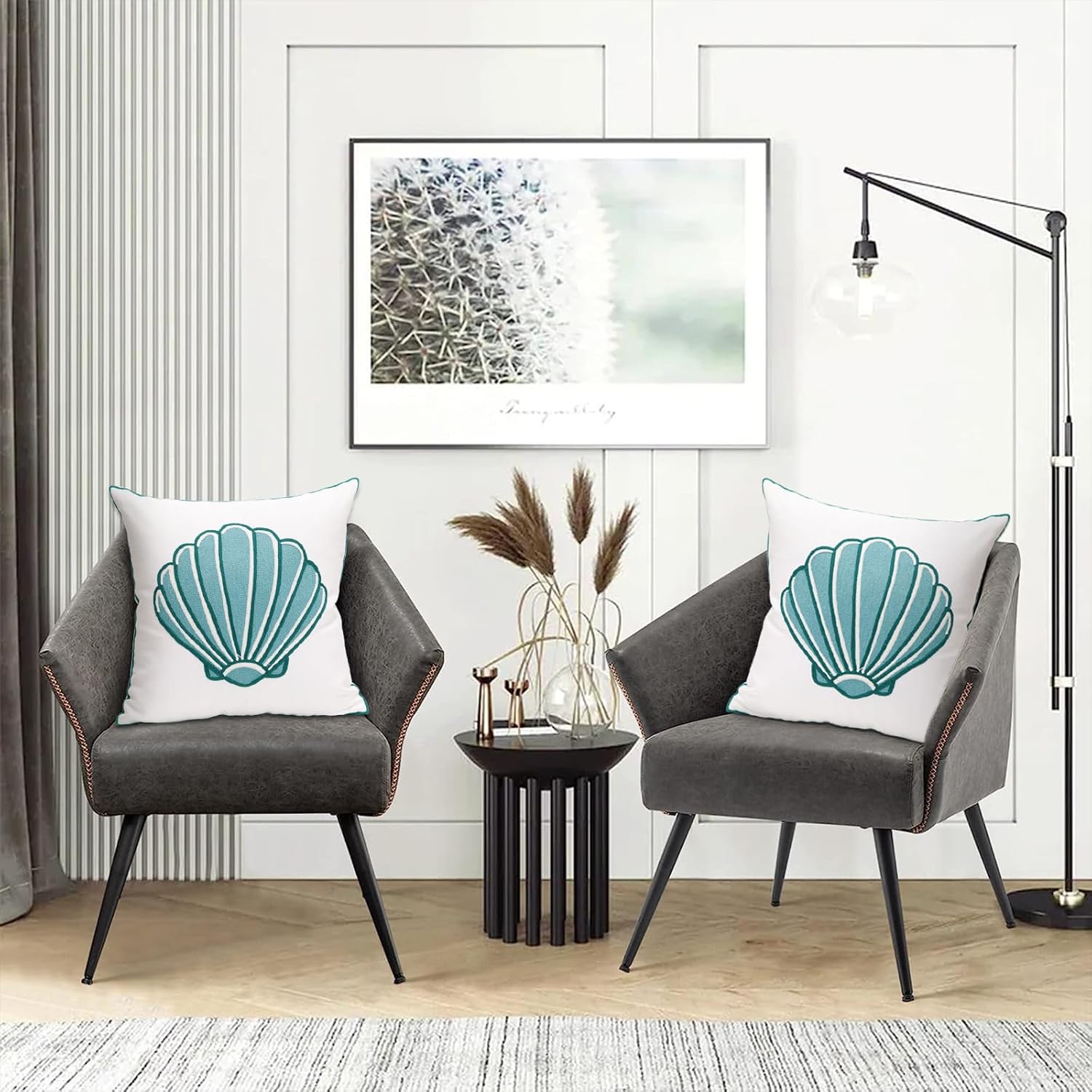 1 PCS Embroidered Throw Pillow Cover Cotton Decorative Square Cushion Cases for Home Sofa Bed and Chair 18 x 18 Inch (Blue Sea Shell-2)