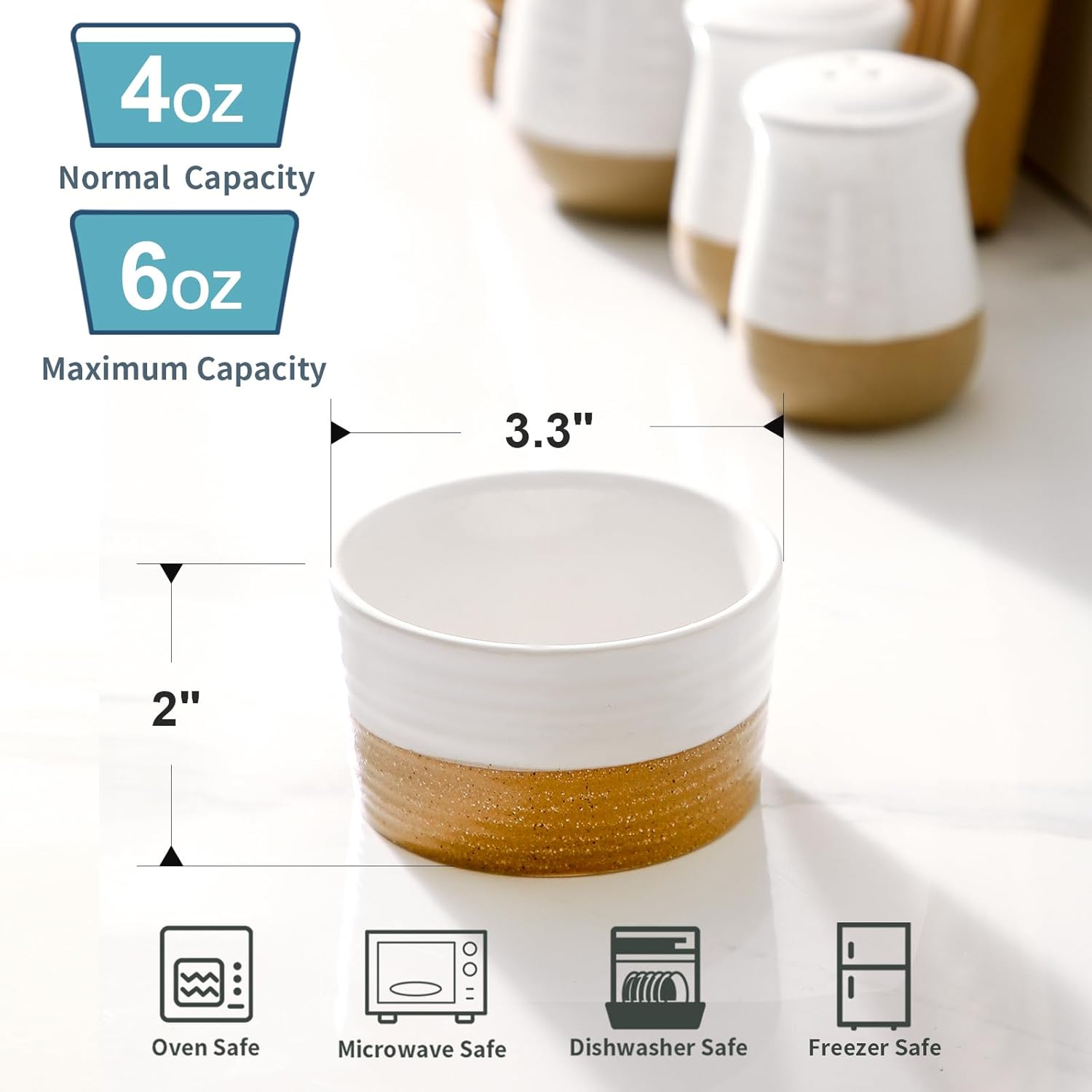 Hasense Ramekins, 6 oz Stoneware Ramekin Oven Safe Set of 6, Mini Ramekins Bowls for Dipping, Brulee, Custard, Farmhouse White Wedding Gift