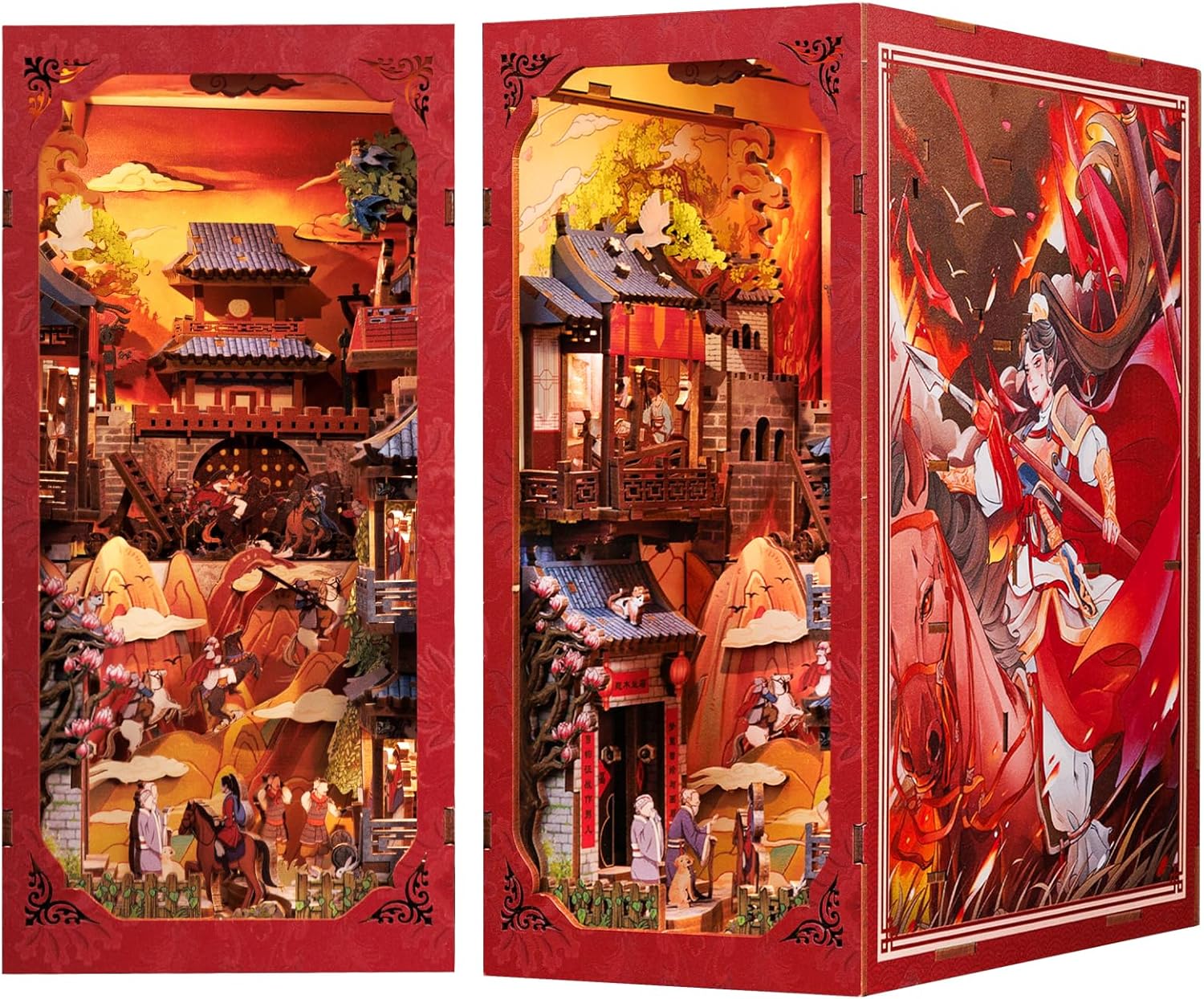 Cutefun Book Nook Kit - DIY Miniature Dollhouse Kit 3D Wooden Puzzle for Adults, Teens, Crafts Gifts for Bookshelf Decor (The Legend of Mulan)