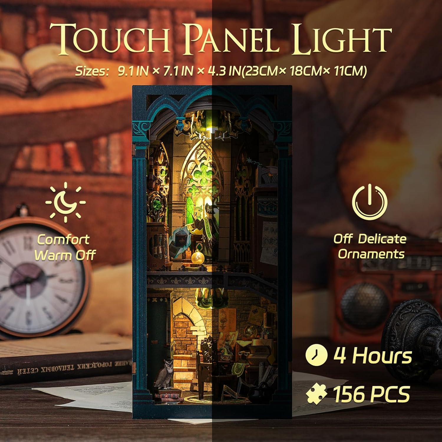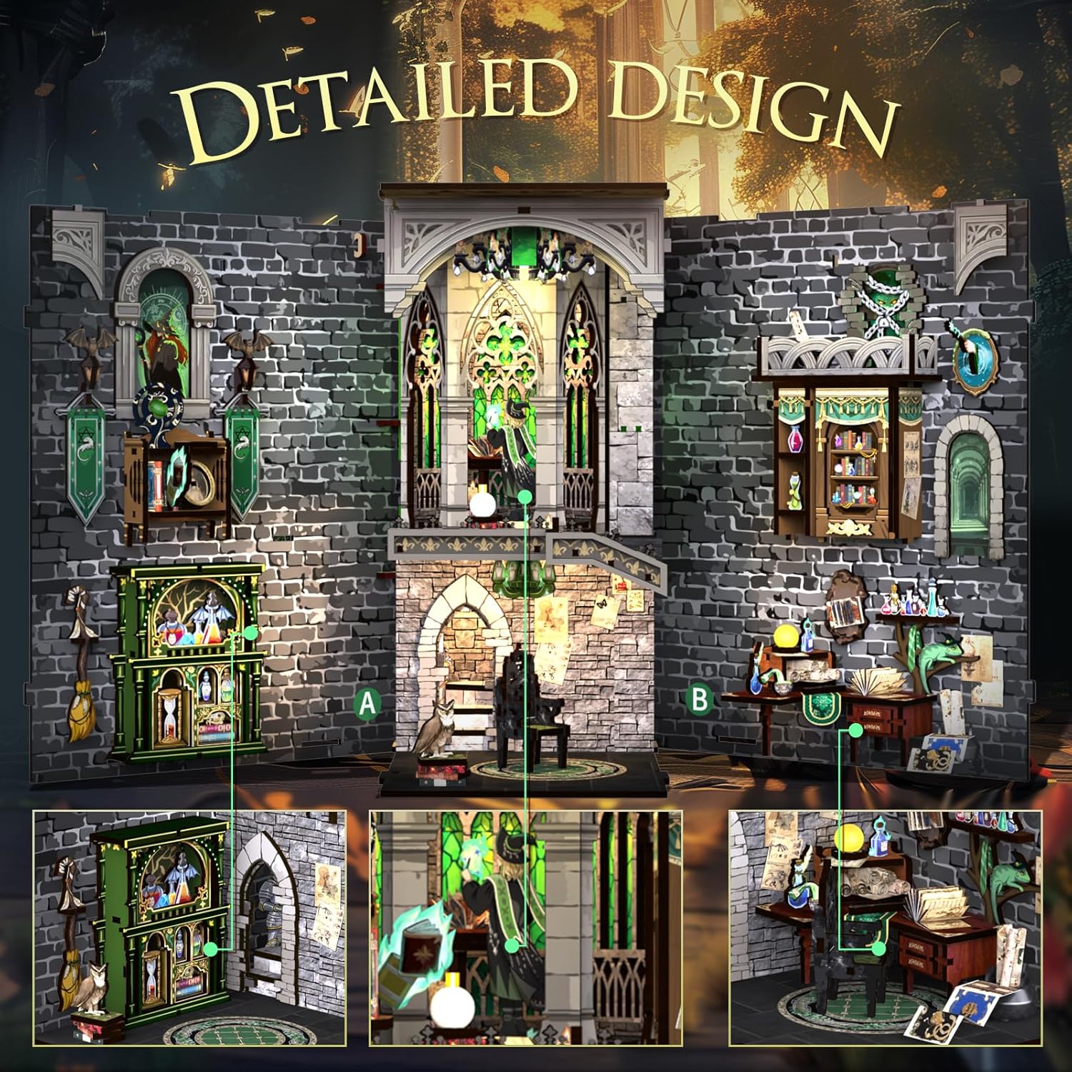 - 【Design Philosophy】Everyone have fantasised about defeating witches in their own magical world using mystical magic spells,"Darkness Common Room" which will take you on a journey through the night of mysteries and magical powers.this book nook kit vividly brings to life elements such as the secluded chamber, the rustling magic quill, and the stirring starry skies.
