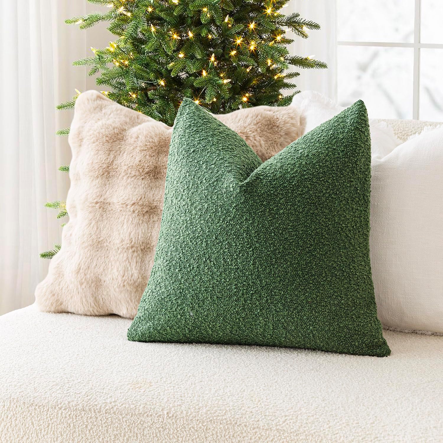 Foindtower Decorative Textured Boucle Throw Pillow Covers Accent Solid Pillow Cases Neutral Soft Cozy Couch Cushion Case for Chair Sofa Bedroom Living Room Home Decor 16x16 Inch,1PC,Hunter Green