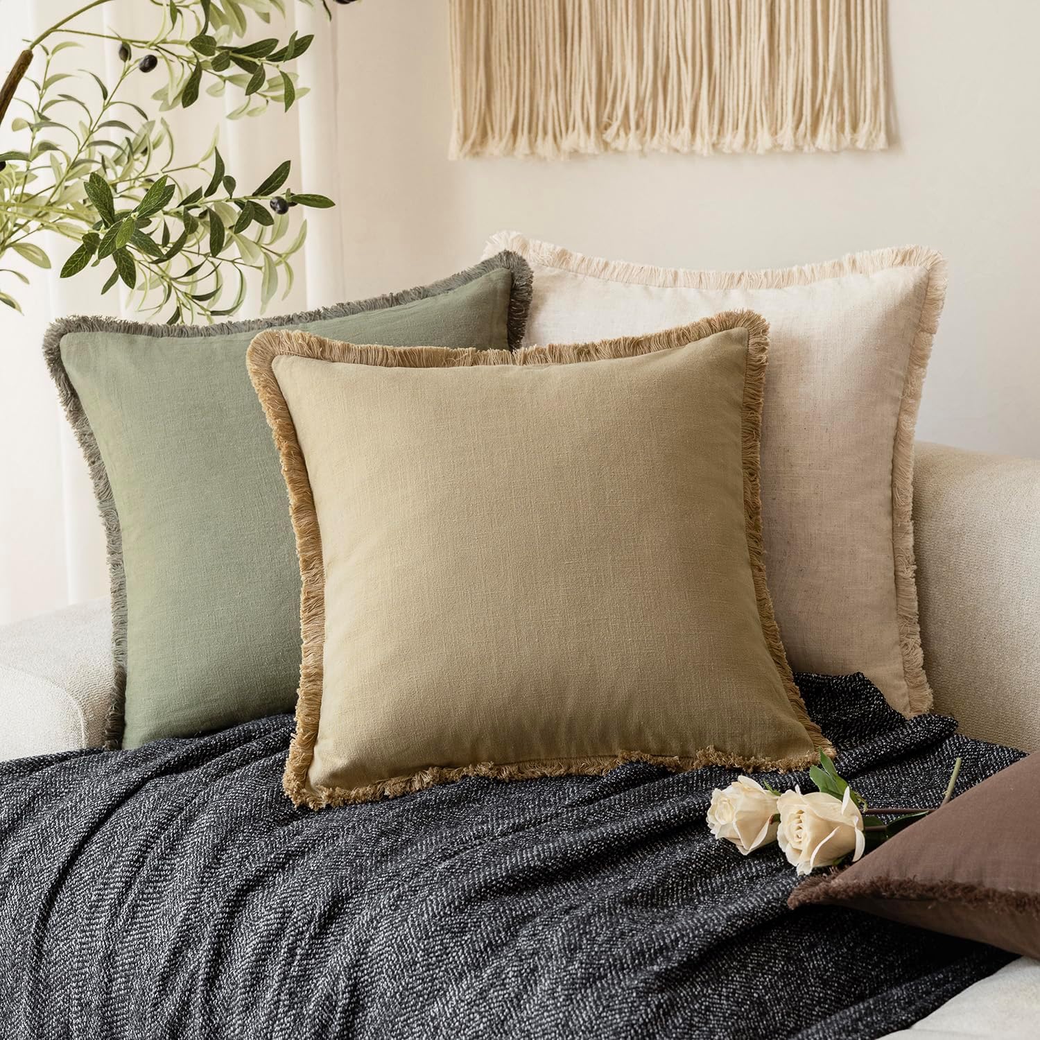- 【Indoor & Outdoor Use】Available in a range of earthy, goes-with-anything hues for a look that works year-round. Fringed pillow covers is suitable for living room, bedroom, office, sunroom, den, kitchen benches, patio sets, nursery, car seat, floor, and more. You can put them on the sofa, bed, couch, outdoor, etc.