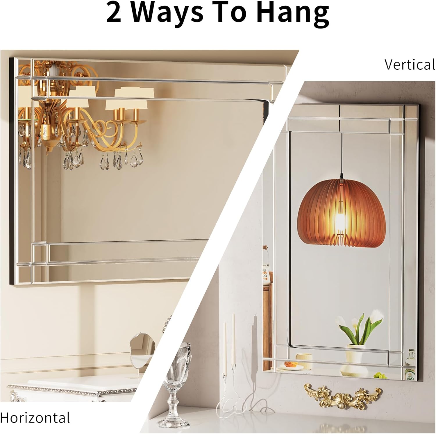 - EASY TO INSTALL:This mirror is designed to be hung on the wall.4 big hangers at the back,do not need to worry the mirror fall any more.