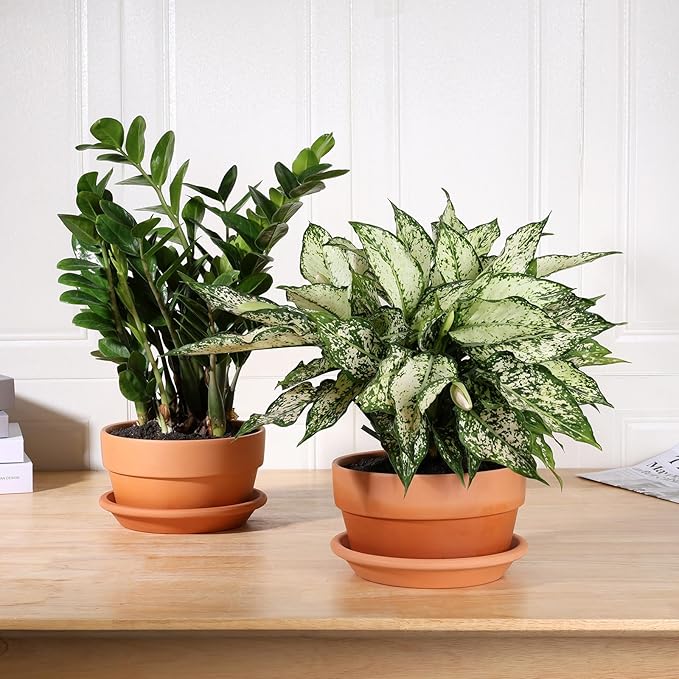 - Terracotta Pots: Terracotta plant pots features highly drained, breathable. It allows air and water to disperse quickly around the pot, promoting water absorption by roots. Great for fragile plants, or those that dislike wet conditions