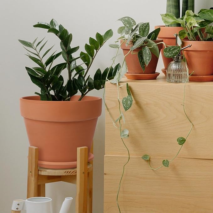 - Terracotta Pots: Compared to others, terracotta feature highly drained, breathable, and dry quickly. It allows air and water to disperse quickly around the pot, promoting water absorption by roots. Great for fragile plants, or those that dislike wet conditions