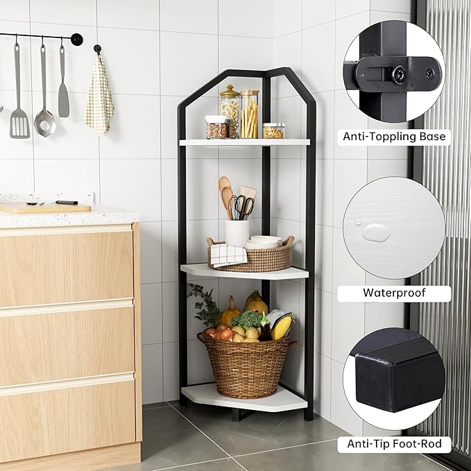 Fun Memories 3 Tier Corner Shelf, 40” Corner Shelf Stand, Corner Bookshelf Plant Stand, Storage Shelf for Bathroom, Living Room, Kitchen,Home Office, White
