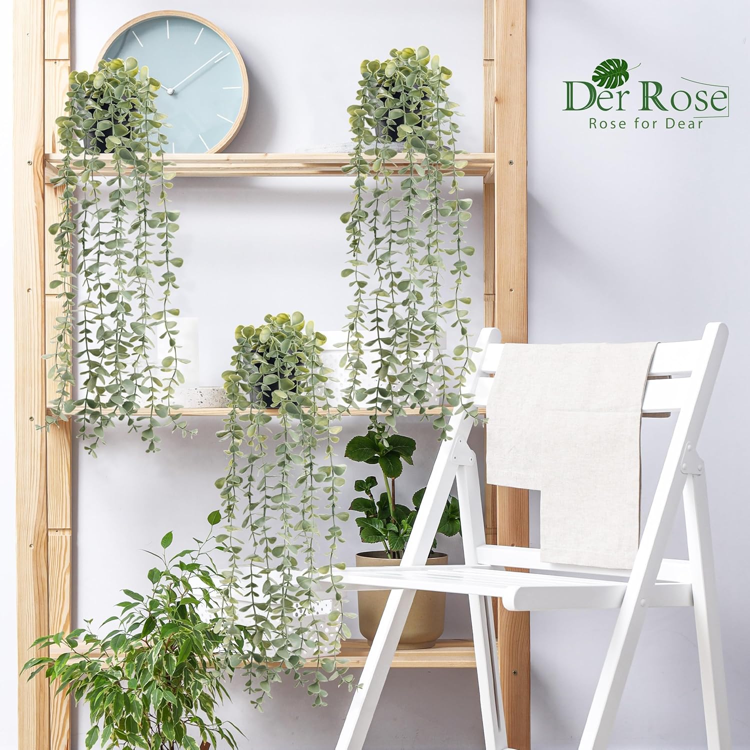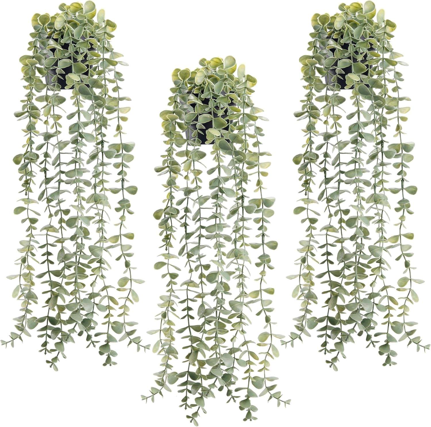 Der Rose 3Pcs Fake Plants Hanging Artificial Decor Faux Potted Eucalyptus Plants for Boho Bathroom Home Office Desk Wall Shelf Bookcase Accessories Decor Indoor