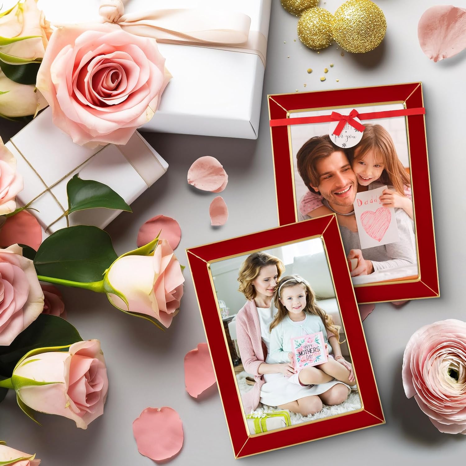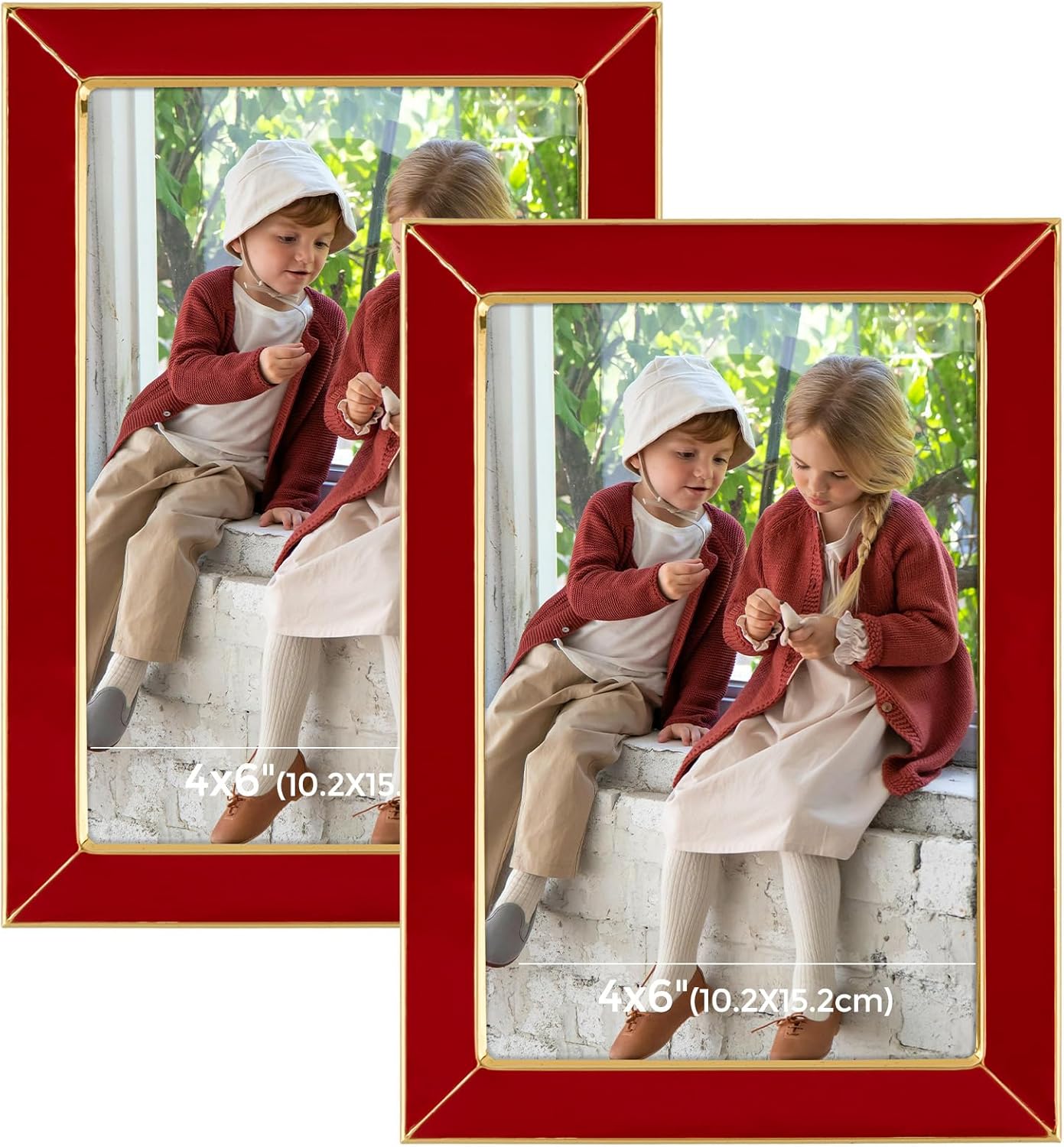 - Premium Metal Frame Red Enamel: Gold metal frame 4x6"with black enamel, sturdy, elegant and fashion 4x6"picture frames set of 2