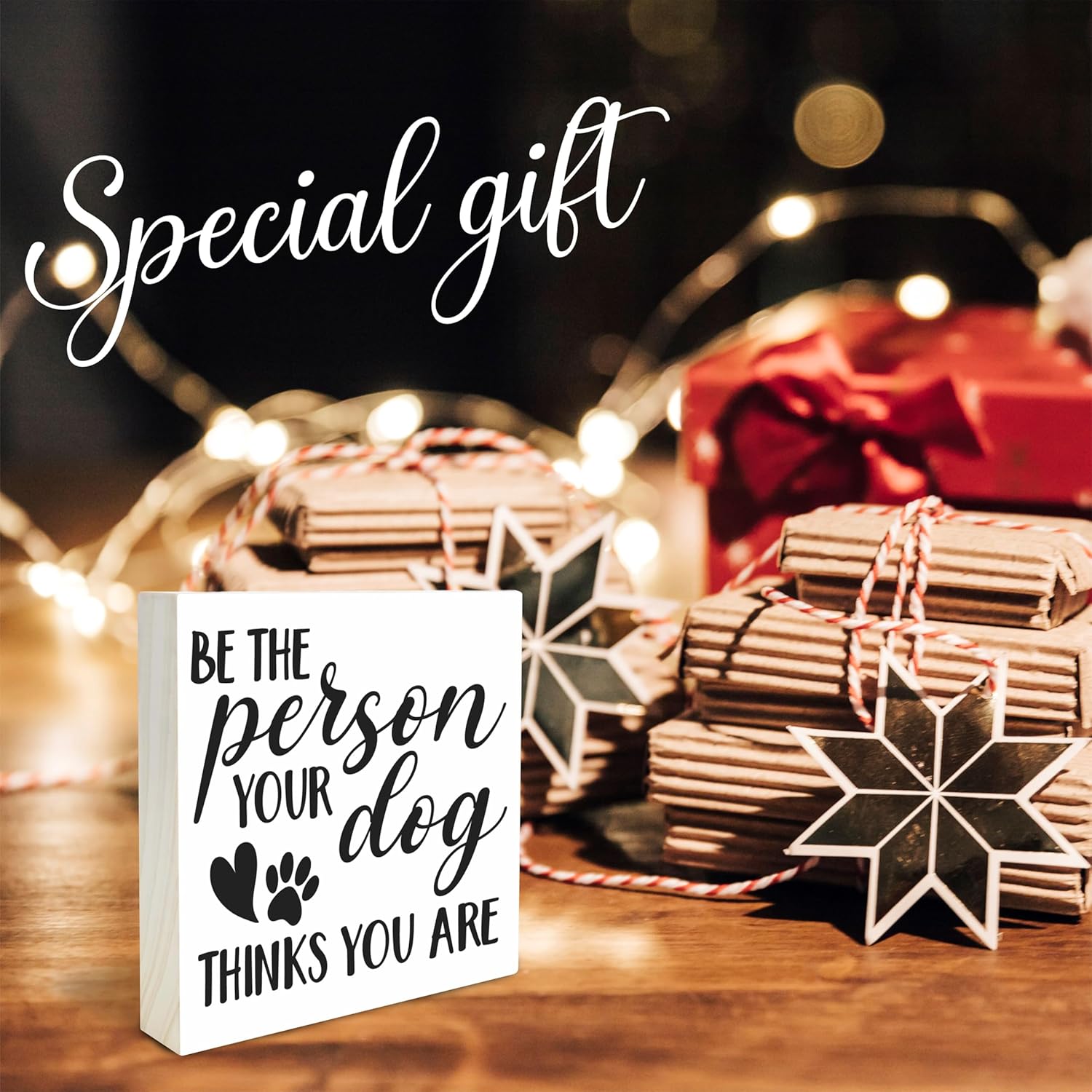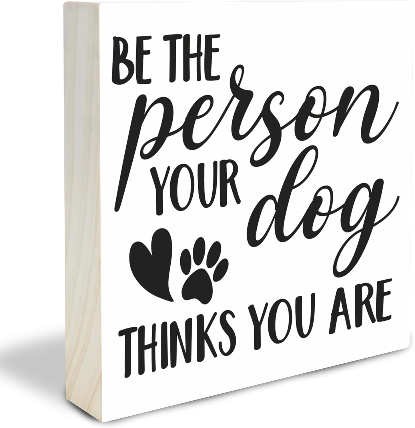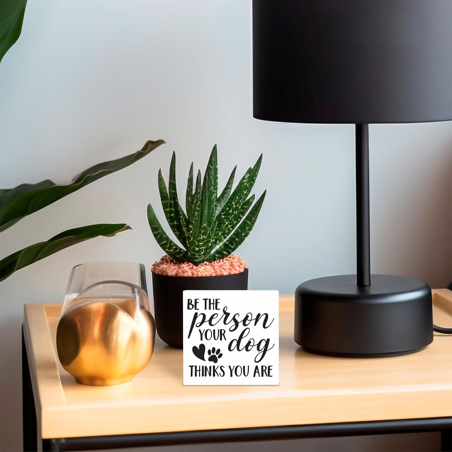 Dog Theme Wooden Block Sign - Be The Person Your Dog Thinks You Are - 4"X4" Pine Wood Plaque, Home & Office Desk Decor, Lover Gift, Room Tabletop, Shelf Accessories - A06