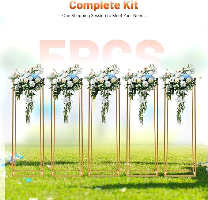5 Pcs Metal Flower Stand for Wedding Centerpieces Stand Column Vases Wedding Flower Stand Rectangular Geometric Gold Centerpieces Stands for Wedding Decorations Home Party Event (5Pcs 31.49inch)