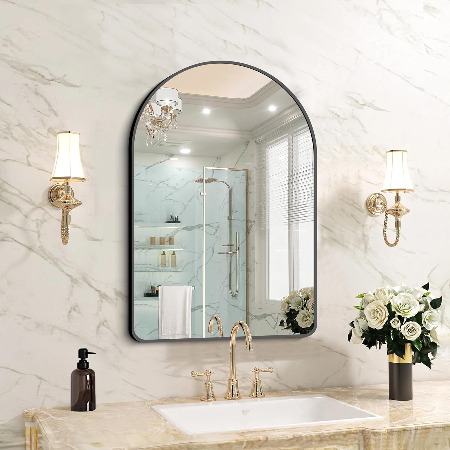 - Aluminum Alloy Frame: Our arch bathroom mirror is made of high quality aluminum alloy frame, sturdy and rust-proof. Special anti-corrosion mirror treatment, designed for long time use. And the high-grade aluminum alloy frame also has an anti-corrosive feature. The wall-mounted mirror for the bathroom performs beautifully in every climate.