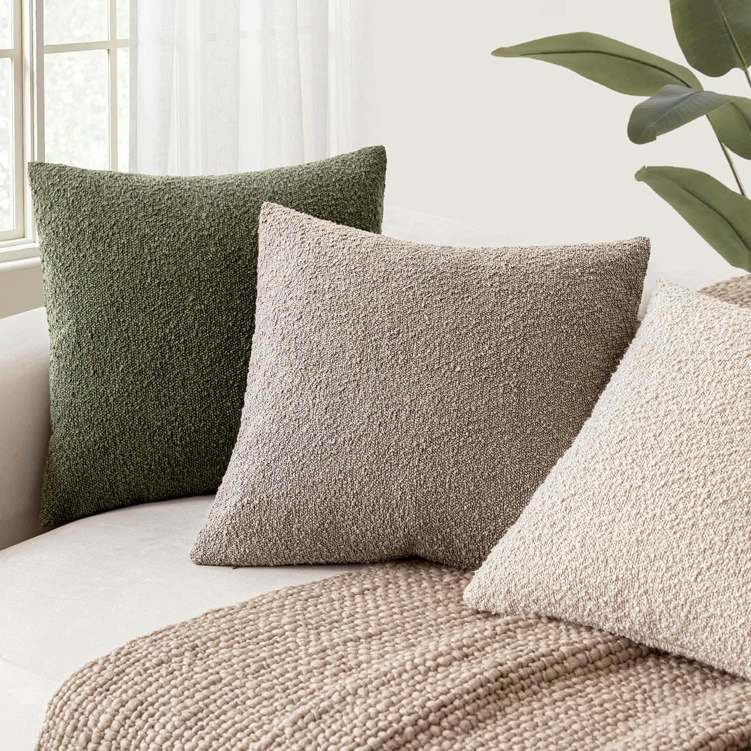 Foindtower Pack of 2 Textured Boucle Throw Pillow Covers Accent Solid Pillow Cases Cozy Soft Decorative Couch Cushion Case for Chair Sofa Bedroom Living Room Home Decor 20x20 Inch Light Taupe