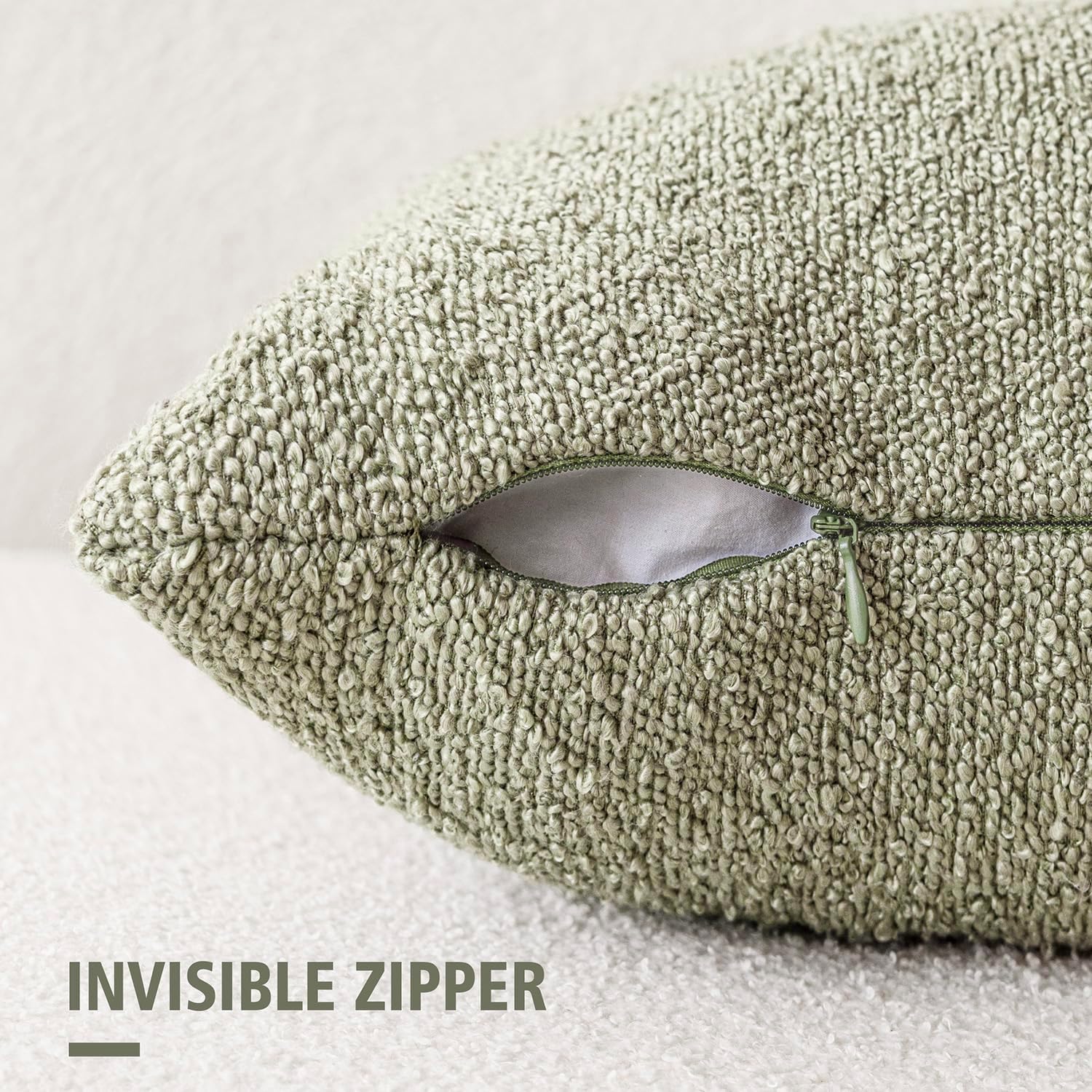 Foindtower Set of 2, Decorative Textured Boucle Throw Pillow Covers Accent Solid Pillow Cases Neutral Soft Couch Cushion Case for Chair Sofa Bedroom Living Room Home Decor 16x16 Inch Dirty Sage Green