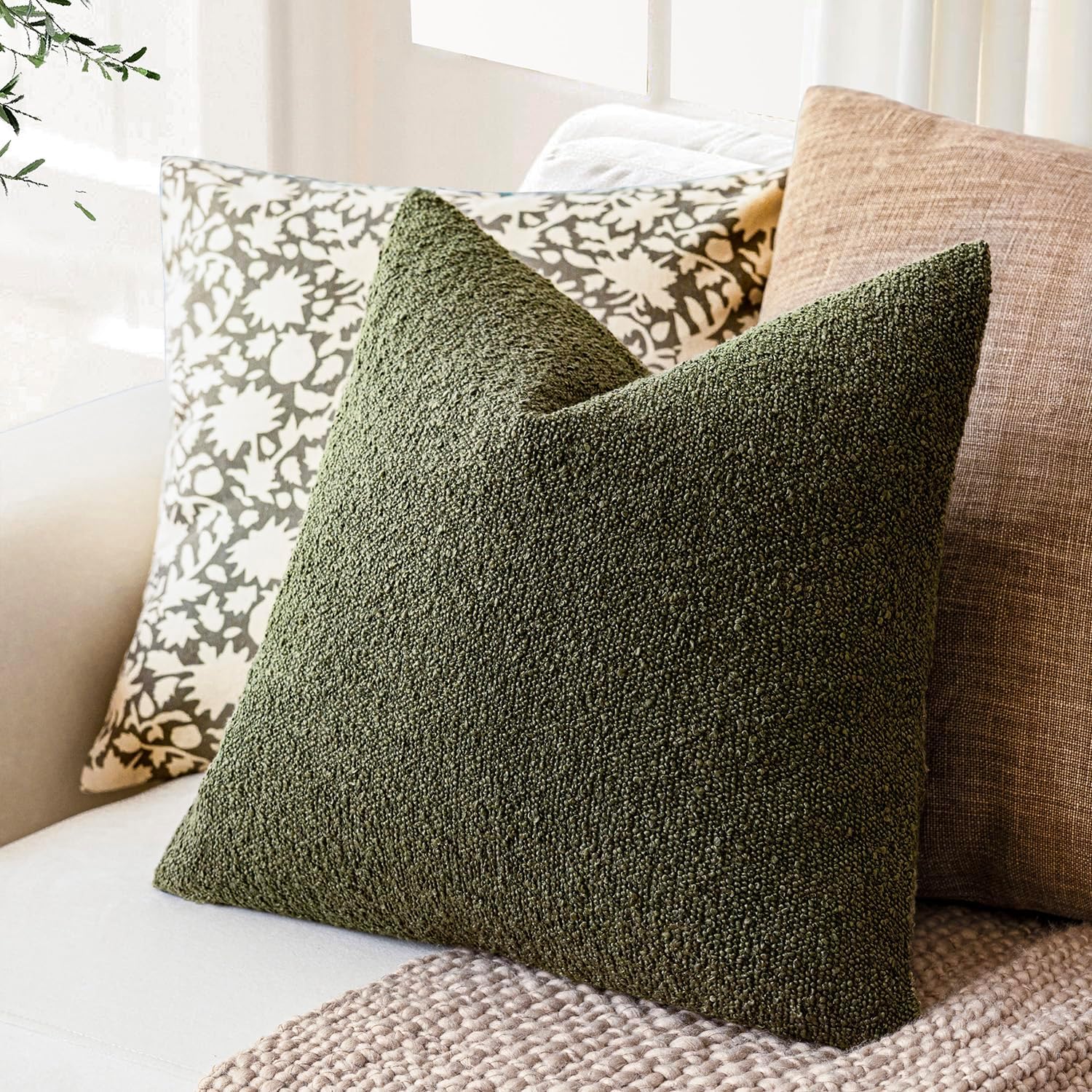 Foindtower Set of 2, Decorative Textured Boucle Throw Pillow Covers Accent Solid Pillow Cases Neutral Soft Cozy Couch Cushion Case for Chair Sofa Bedroom Living Room Home Decor 24x24 Inch Moss Green