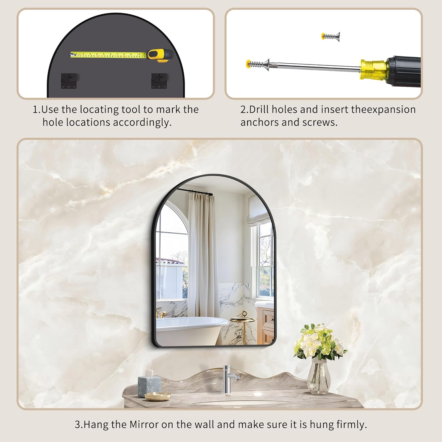 - Arched Bathroom Mirror Design: The Arched-top wall mirror makes your bathroom more elegant and classy, which especially attracts your eyes.bathroom mirrors for over sink,living room wall decor, black arched mirror Ideal for wall mirrors decorative, black mirror for bathroom make the space more brighter and spacious.