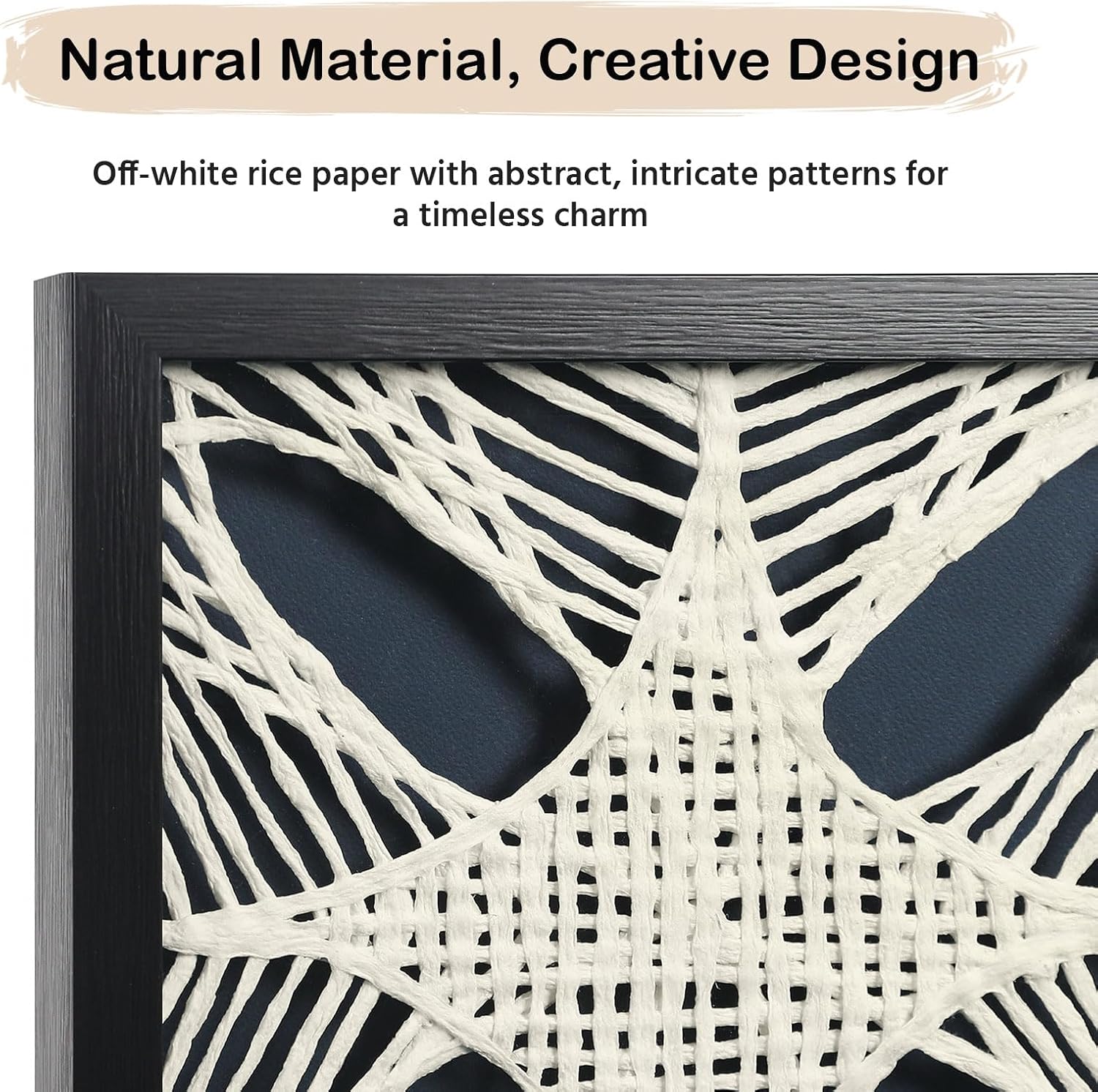 - Choose the Uniqueness: Discover the epitome of artistic elegance and wake up your walls with our Framed Rice Paper Wall Art Set. Featuring intricate paper cutouts in a mesmerizing abstract style, housed in a sleek black shadow box, this paper artwork set effortlessly blends modern sophistication with timeless charm. A perfect addition to any living or working spaces.