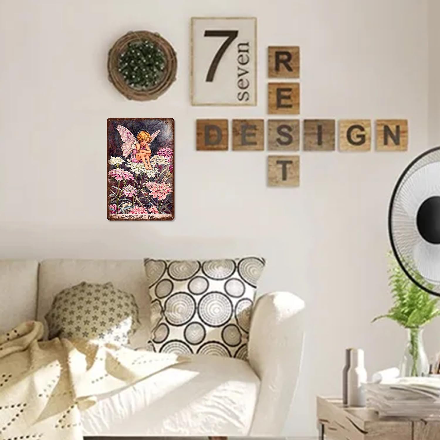 Flower Fairy Wall Decor Vintage Metal Tin Signs Fairy Garden Accessories - The Candytuft