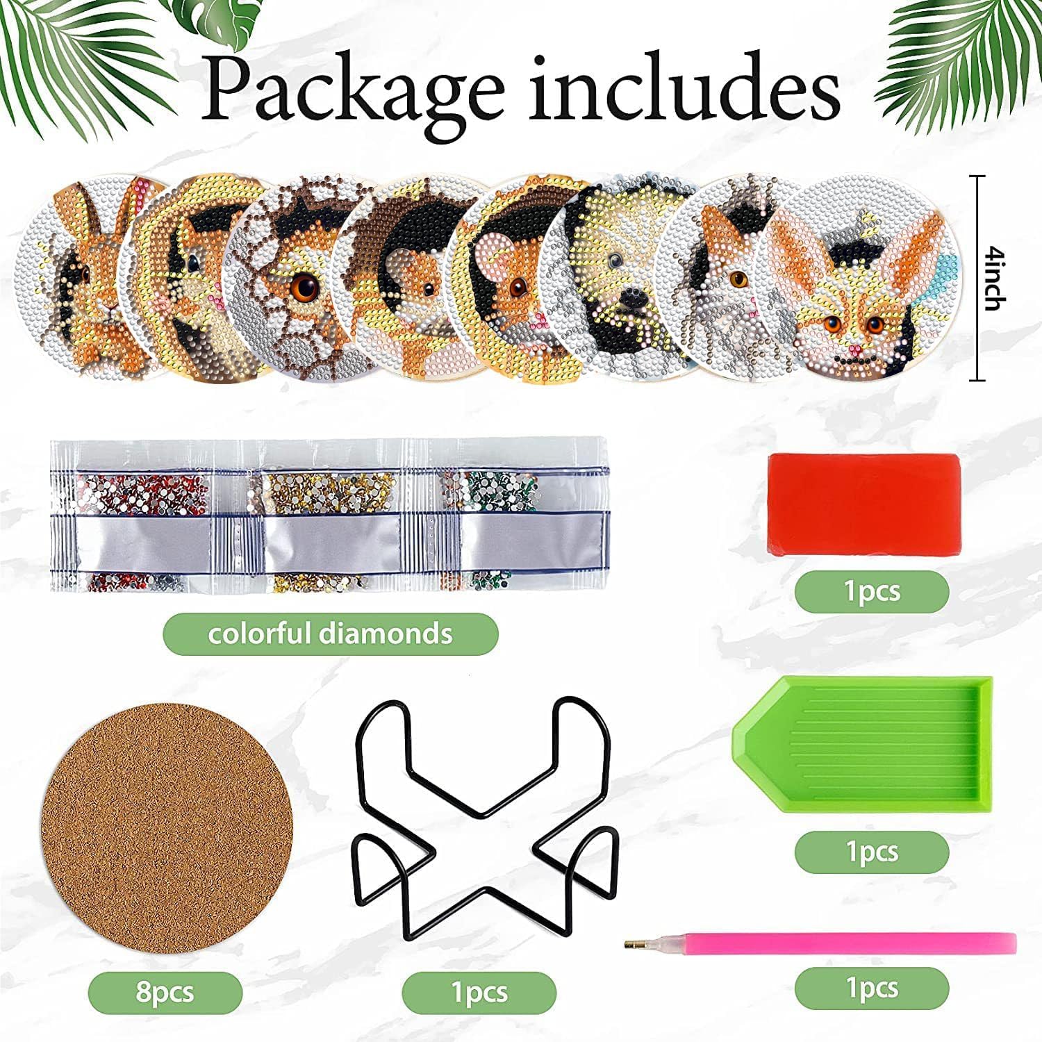 - Complete DIY Experience : Unleash your creativity with our diamond art kits for adults, which include 8 beautifully designed coasters, a set of vibrant diamonds, and essential diamond painting accessories. Each kit also features a diamond painting pen, clay glue, and a diamond tray, providing everything you need for an immersive DIY coaster creation.