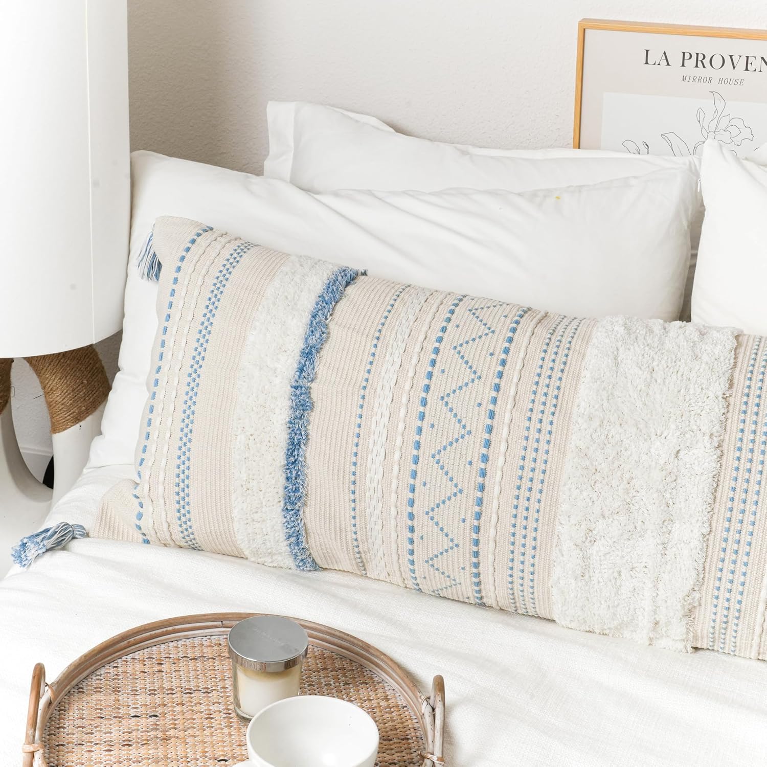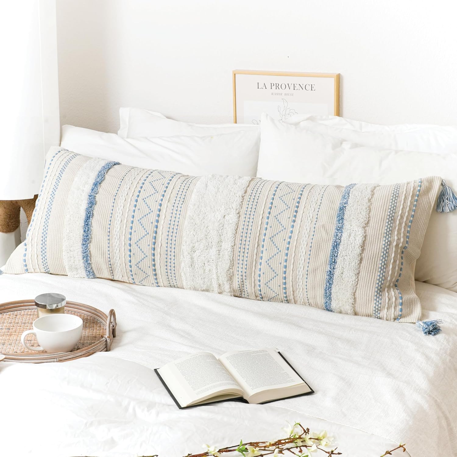 BlissBlush Large Body Pillow Cover for Bed 20x54 Coastal Blue Boho Accent Oversized Long Pillowcase for Bedroom Decorative Cushion Farmhouse Home Décor (Cover ONLY, Pack of 1)