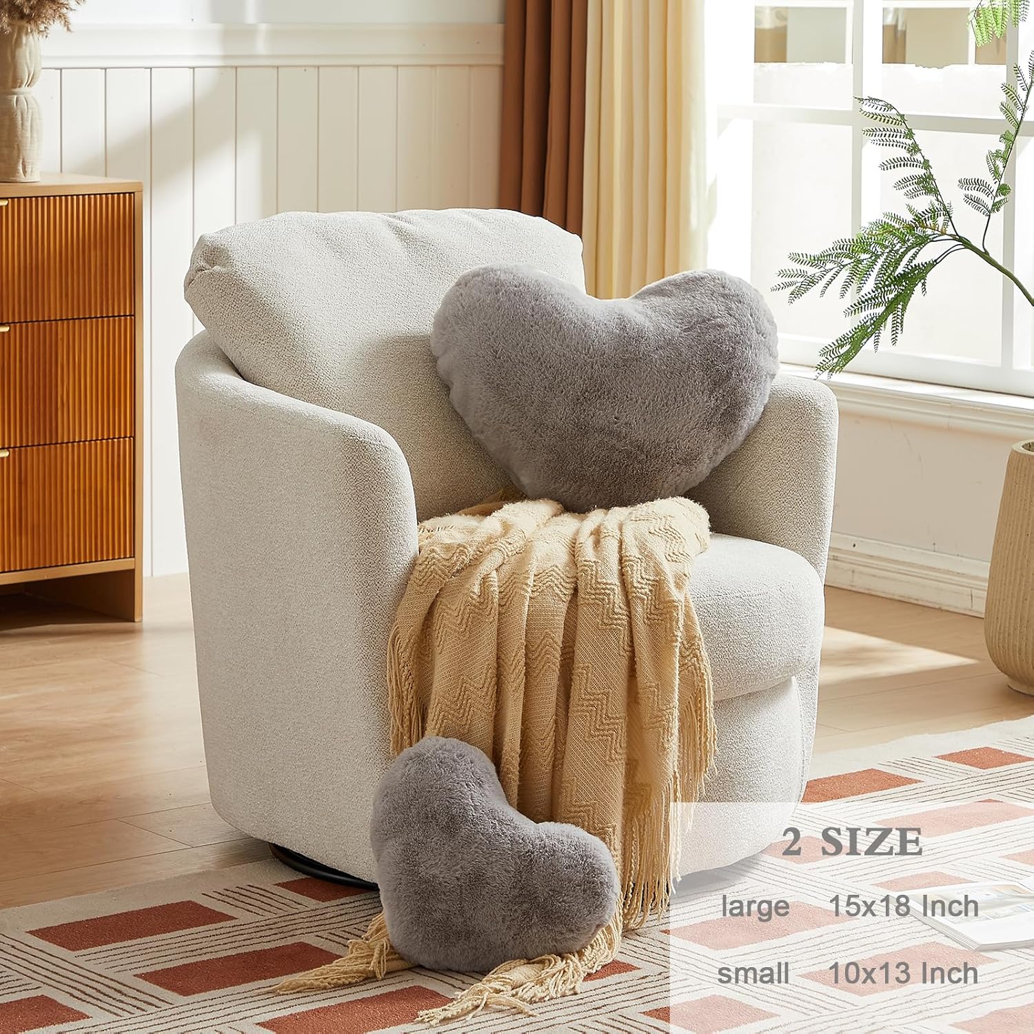 EastTree Heart Pillows, Grey Heart Shaped Pillows, Love Throw Pillows Gifts, Ultra Soft Faux Rabbit Fur Small Cute Pillows, Women Girls Kid Room Decor 10x13 Inch