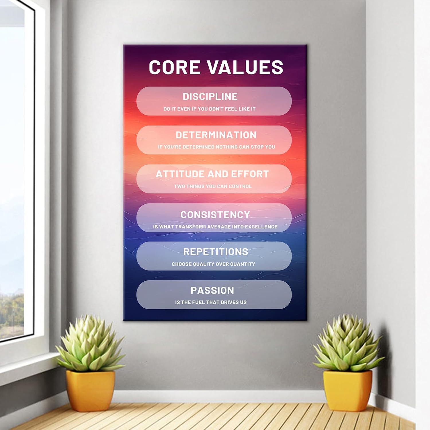 Inspirational Canvas Poster Print Motivational Core Values Entrepreneur Quotes Picture Wall Art for Modern Home Living Room Office Workplace Wall Decor Artwork Ready to Hang [24''Wx36''H]