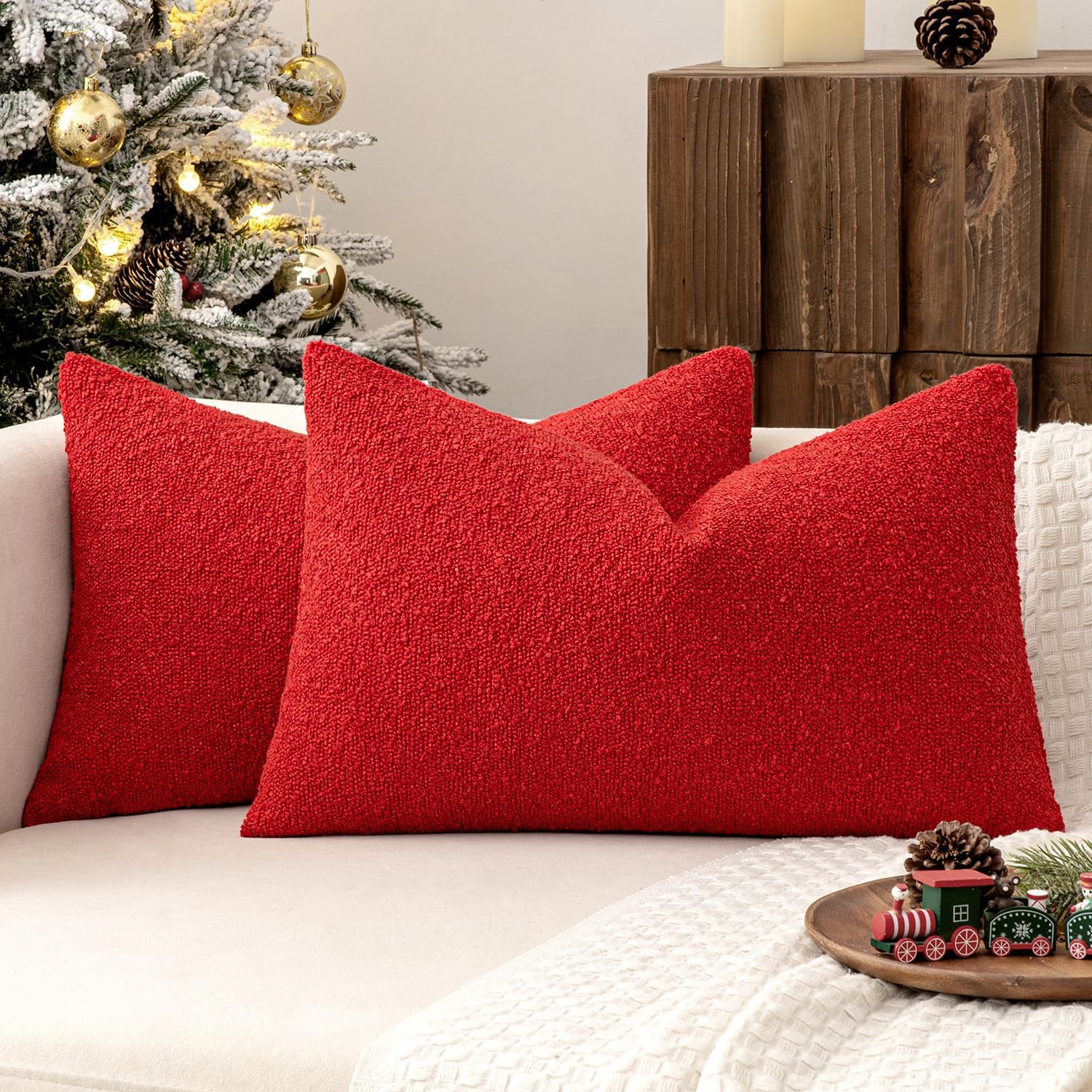 MIULEE 12x20 Inch Christmas Decorative Lumbar Throw Pillows for Bed Set of 2 Textured Boucle Neutral Winter Throw Pillow Covers Red Accent Solid Pillowcases Sofa Livingroom Home Decor