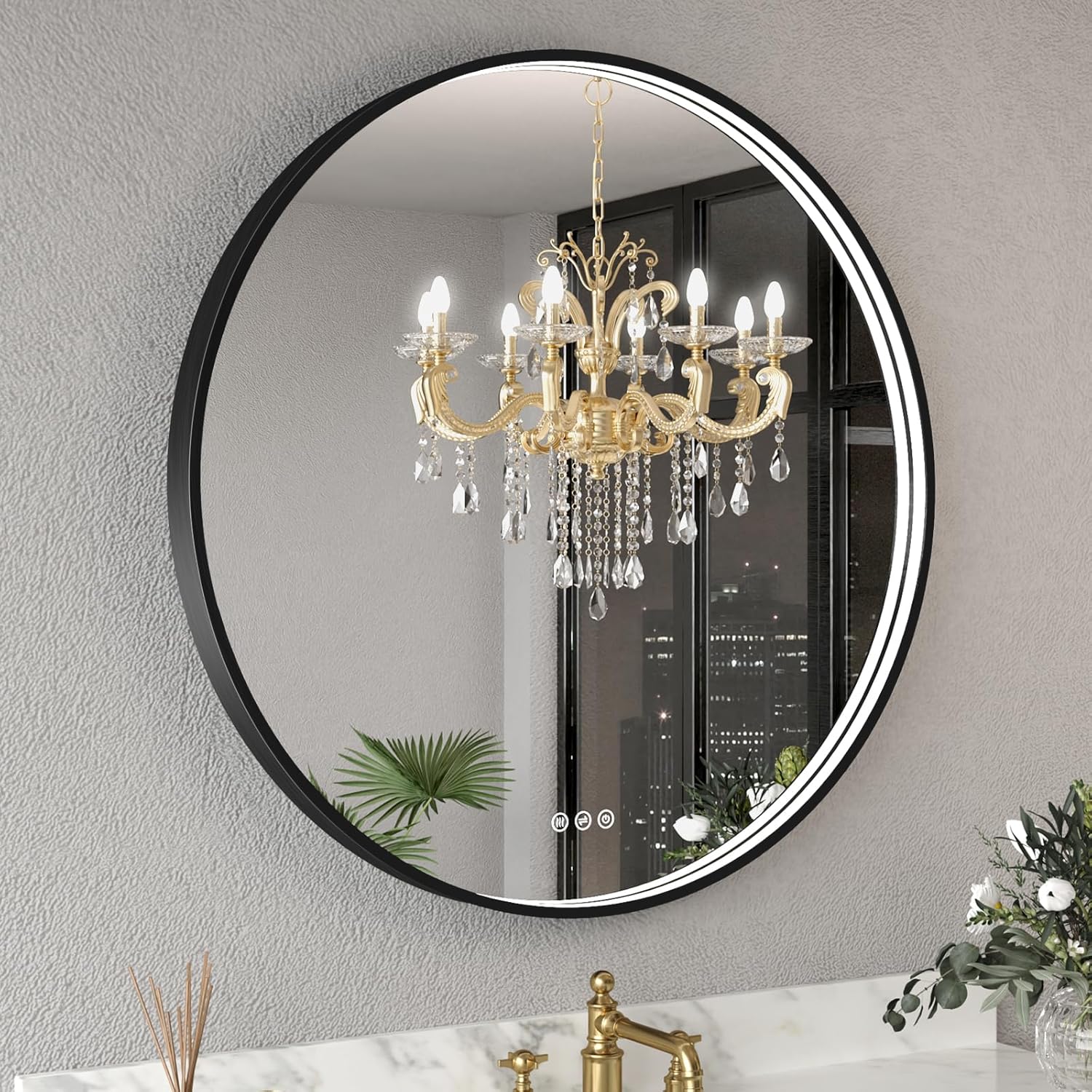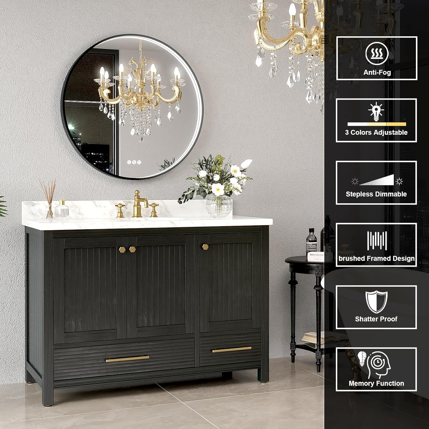 LED Bathroom Mirror with Black Framed 28 Inch, LED Mirror for Bathroom with Anti-Fog, Stepless Dimmable, Front Lit, Memory Function, Shatter-Proof