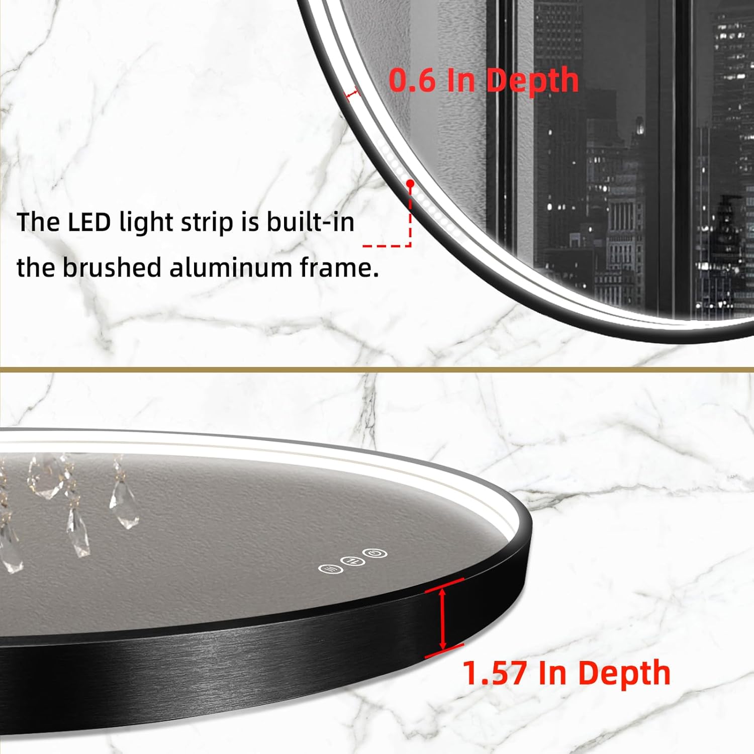 - 【Burshed Aluminum Frame】Oerbasz black LED mirror is made of premium brushed aluminum frame, which make our makeup mirror look more stylish with modern designs. We use high-definition glass for true and clear images.
