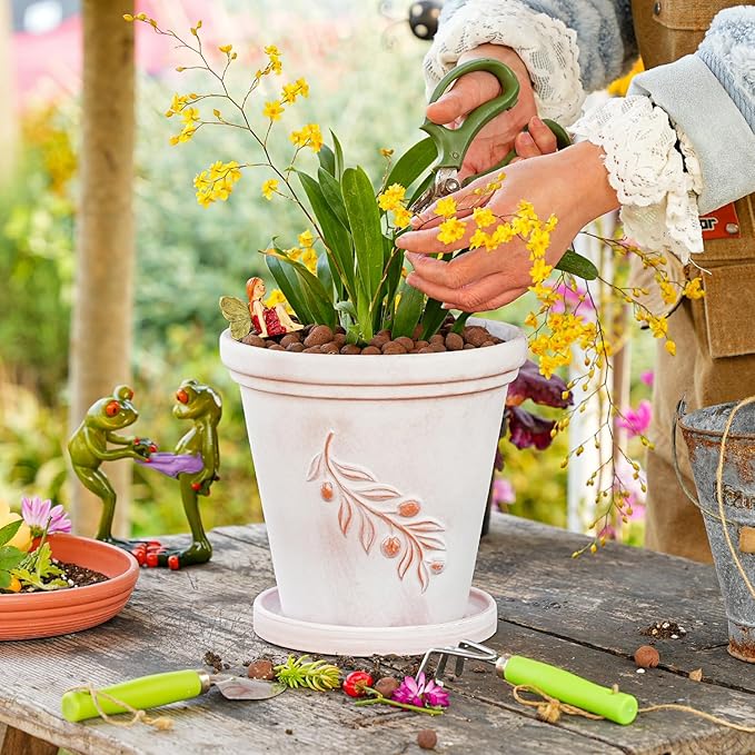 - Unique Design: Beautiful embossed pots, the delicate decorative flower pattern design on the surface adds a nice touch, elegant and full of artistic sense, great for decorating windowsill, tabletop, kitchen,garden and patio.