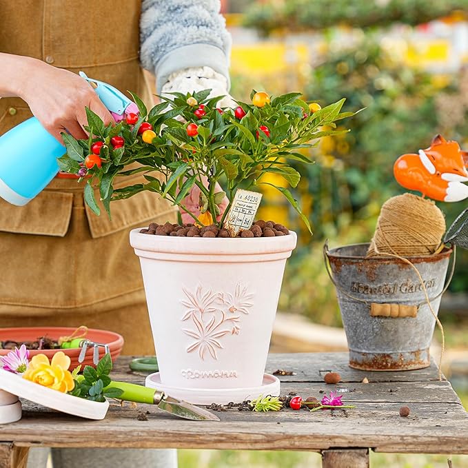 - Decorative & Functional: These terra cotta pot with drainage hole on the bottom and separate tray, they allow water to wick out which helps protect against over-watering, can be used for both indoor and outdoor plants and flowers.