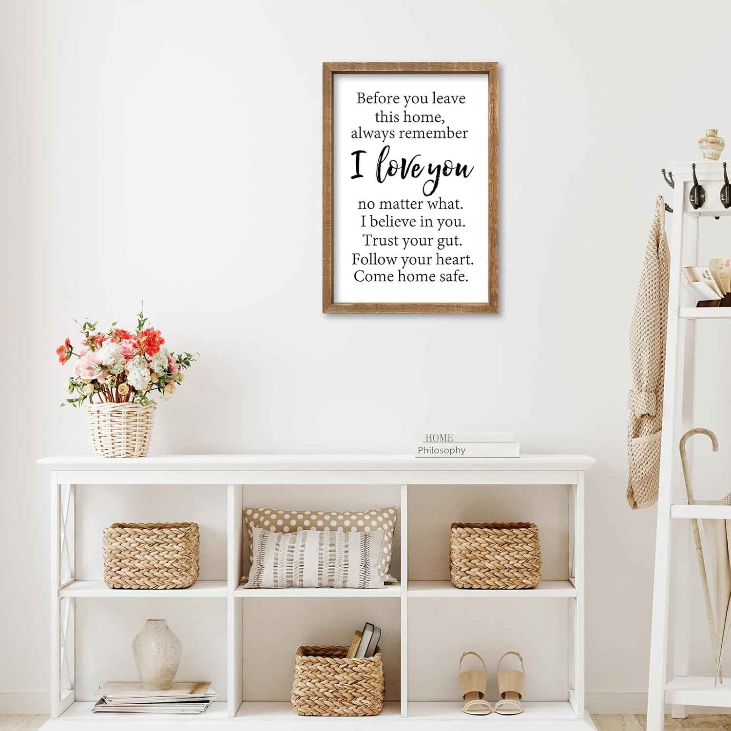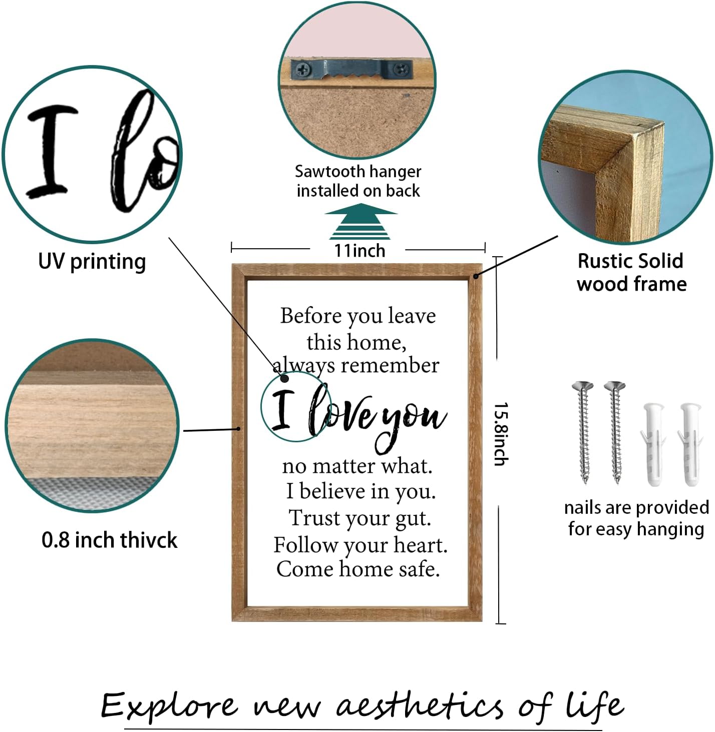 Before You Leave This Home Sign Wall Art Decor 16x11 Inch Rustic Farmhouse Living Room I Love You Inspirational Family Wood Framed Sign Entryway Motivationa And Romantic Wall Hang (Wood)