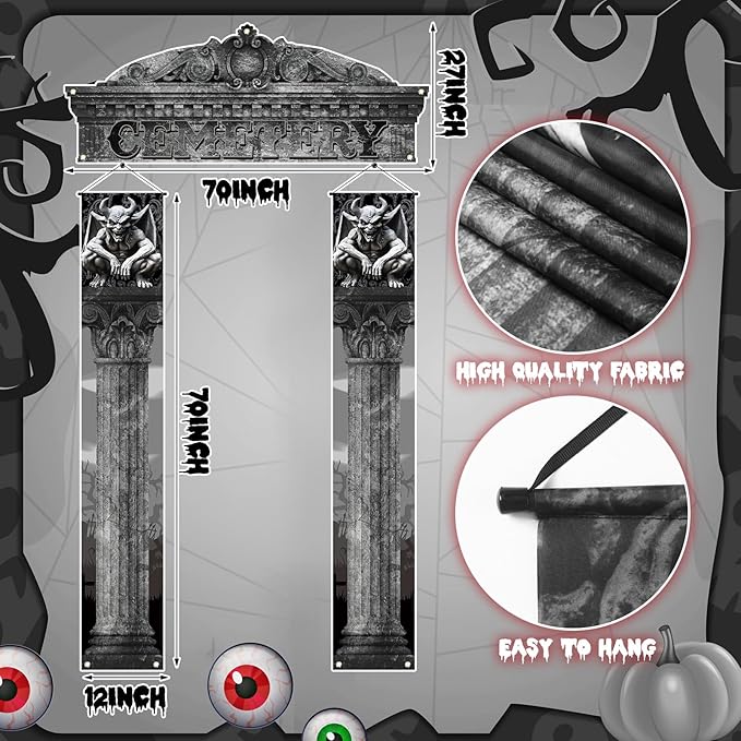 - Convenient Package: our Halloween cemetery banners come in a convenient package that includes 2 porch banners and a large banner; This bundle ensures you're equipped with everything you need to transform your home into a unnerving graveyard setting
