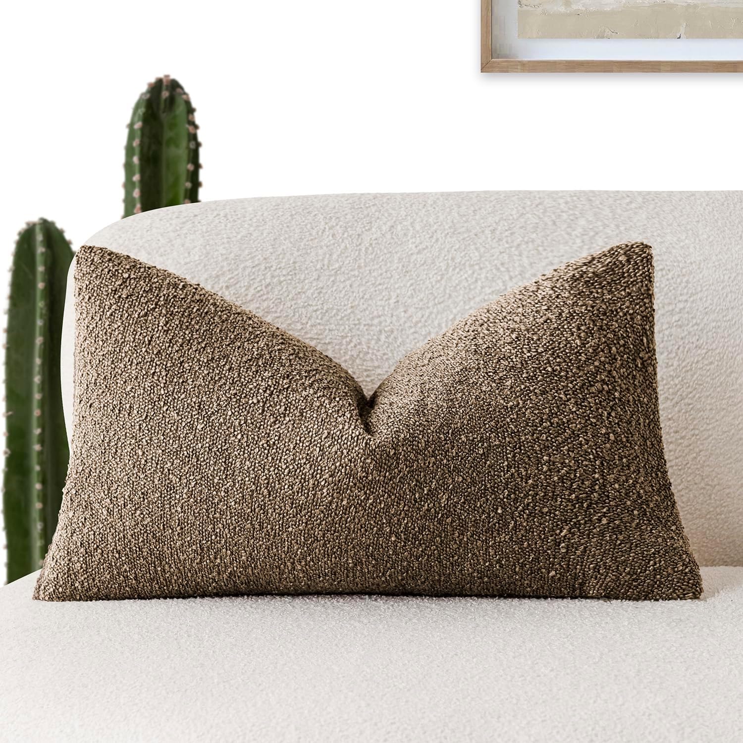 Foindtower Decorative Textured Boucle Throw Pillow Covers Accent Solid Lumbar Pillow Cases Neutral Soft Cozy Couch Cushion Case for Chair Sofa Bedroom Living Room Home Decor 12x20 Inch,1PC,Light Brown