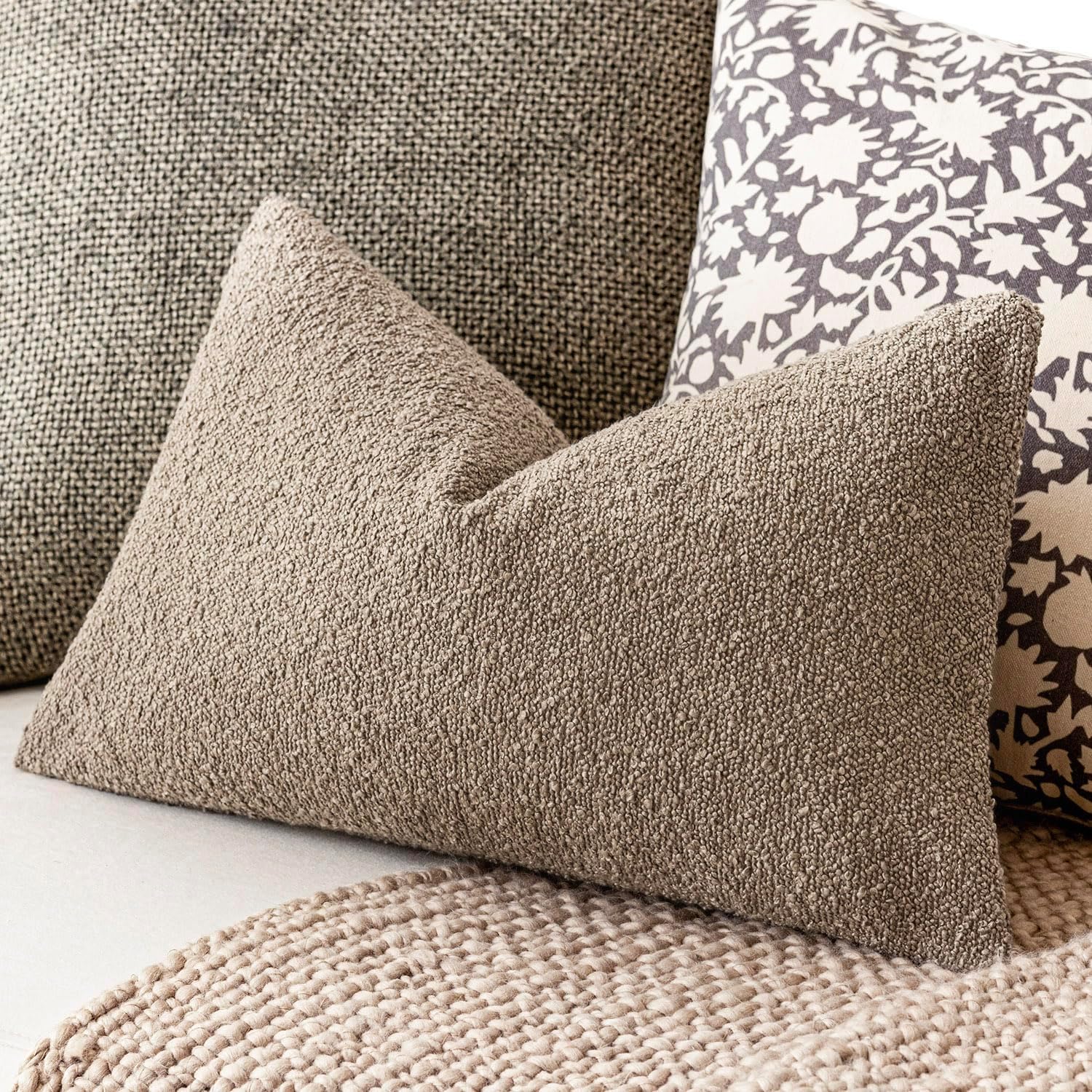 Foindtower Decorative Textured Boucle Throw Pillow Covers Accent Solid Lumbar Pillow Cases Neutral Cozy Couch Cushion Case for Chair Sofa Bedroom Living Room Home Decor 12x20 Inch,1PC,Light Khaki Tan