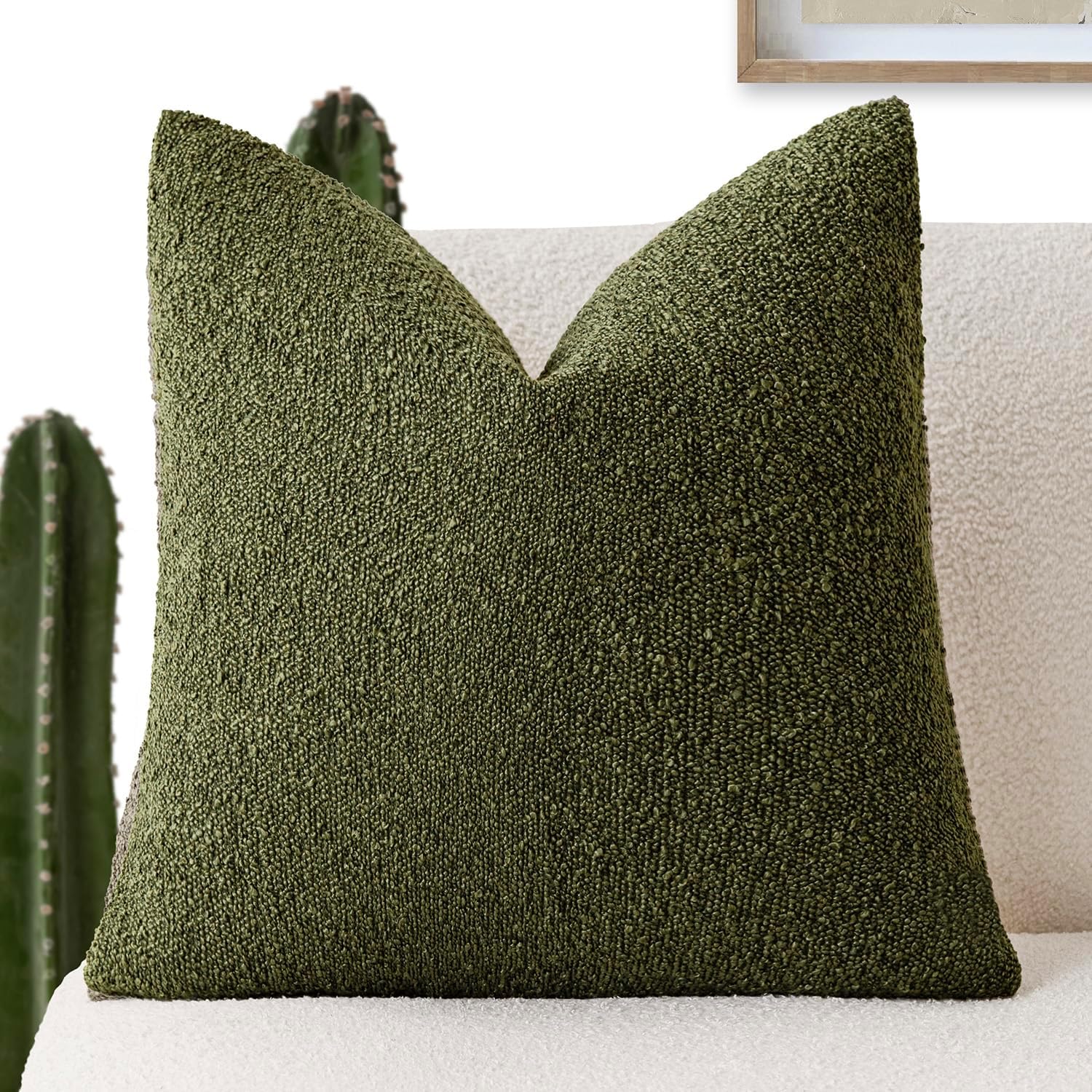 Foindtower Decorative Textured Boucle Throw Pillow Covers Accent Solid Pillow Cases Neutral Soft Cozy Couch Cushion Case for Chair Sofa Bedroom Living Room Home Decor 16x16 Inch,1PC,Moss Green