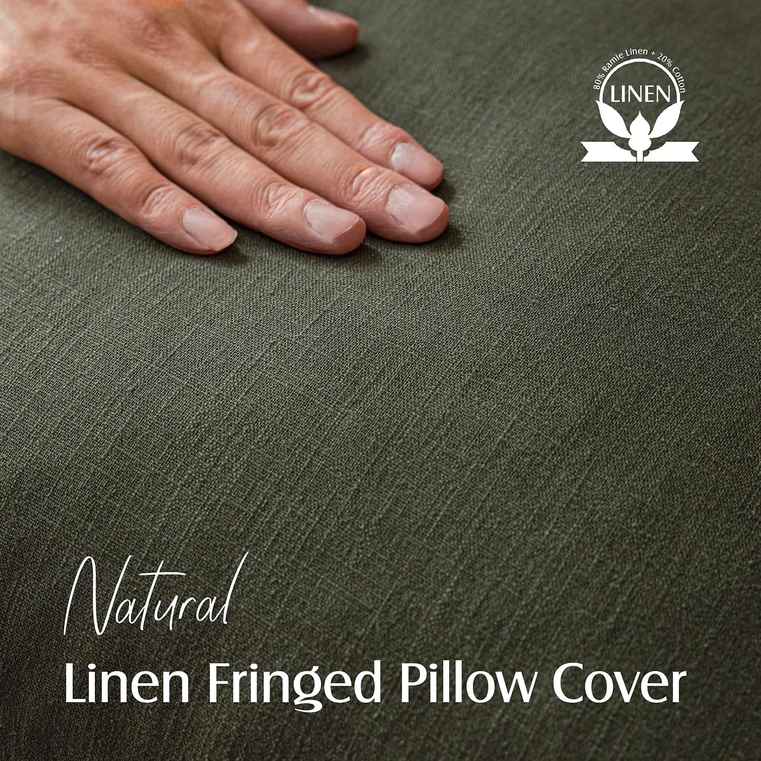 Foindtower Decorative Linen Fringe Throw Pillow Covers Cozy Boho Farmhouse Cushion Cover with Tassels Soft Accent Pillowcase for Chair Sofa Bed Living Room Home Decor, 24×24 Inch, 1PC,Dark Olive Green