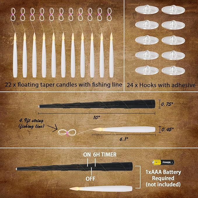 - Magical Floating Effect: These floating LED taper candles create a magical and enchanting atmosphere, perfect for Halloween decorations. The illusion of floating candles adds a mystical touch to any setting.