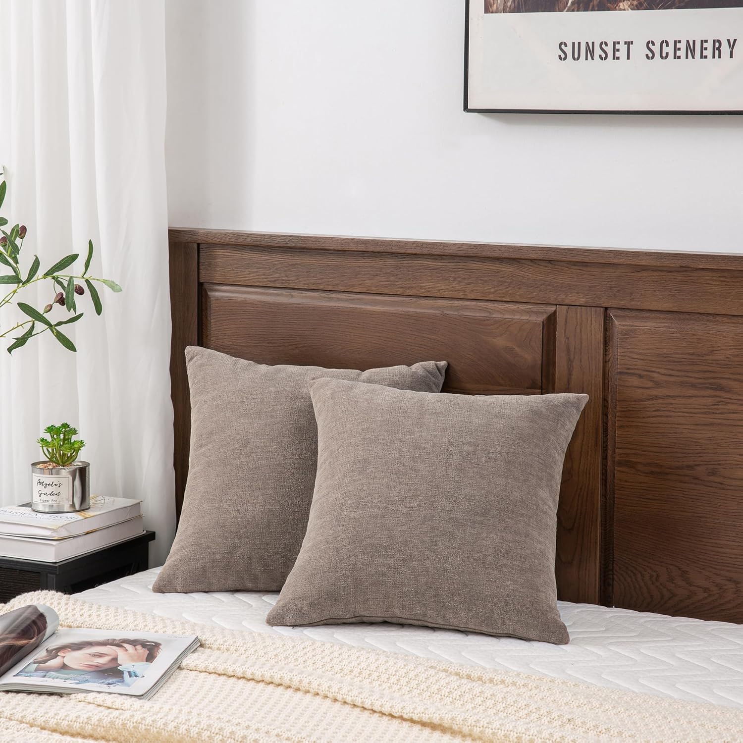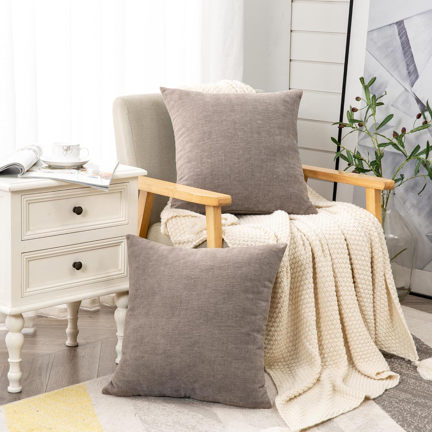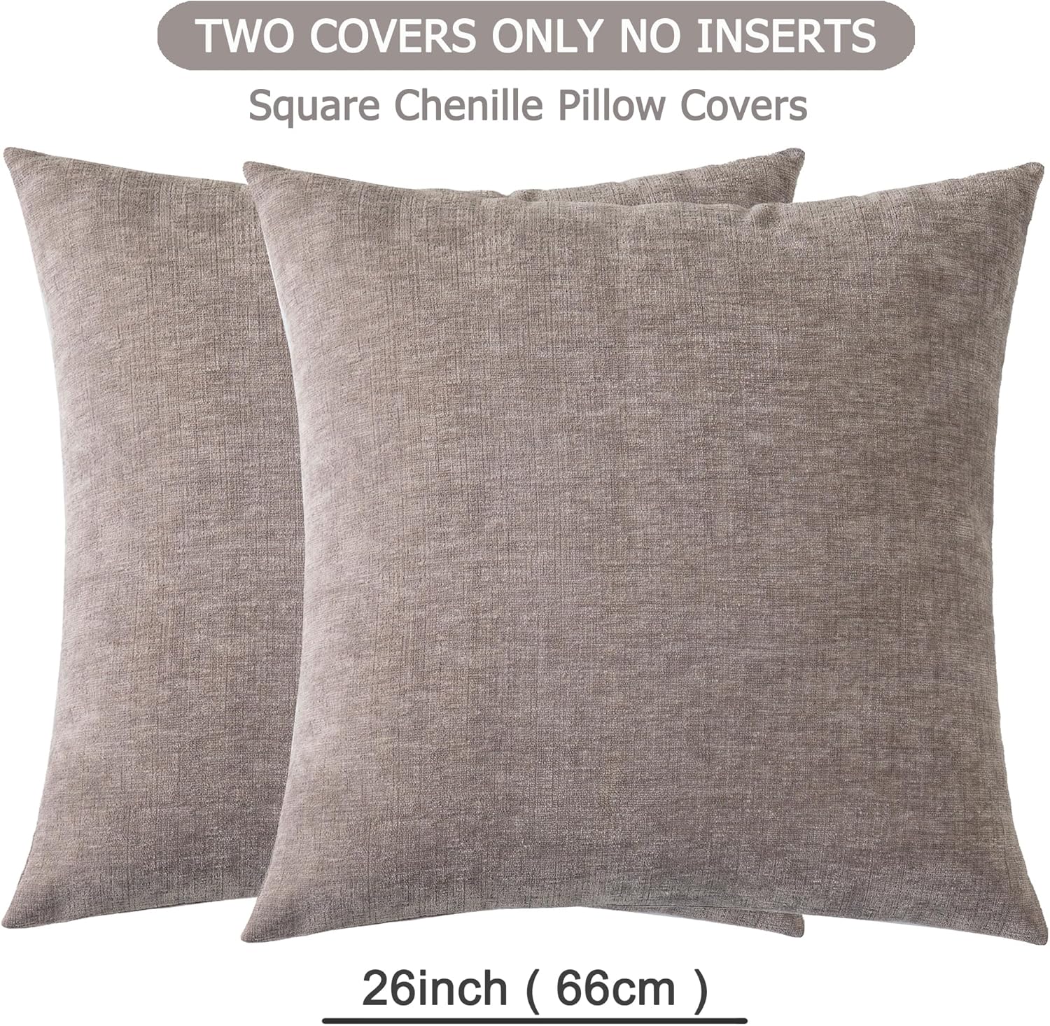GAWAMAY Decorative Chenille Throw Pillow Covers 26x26 Inch Pack of 2, Soft Square Couch Pillow Cover for Sofa Cushion Living Room Bedroom Oversized Pillowcases Taupe Grey 66x66cm (ONLY Covers)