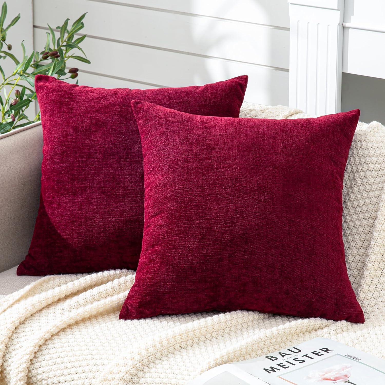 GAWAMAY Decorative Chenille Throw Pillow Covers 26x26 Inch Pack of 2, Soft Square Couch Pillow Cover for Sofa Cushion Living Room Bedroom Oversized Pillowcases Burgundy Red 66x66cm (ONLY Covers)