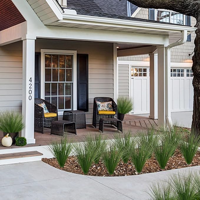 - MINIMALIST DESIGN: this artificial grass is well-made, colorful, just like the real thing, perfect for home outdoor garden, house gate or venue decoration, wedding, store, restaurant, farmhouse decoration, bedroom decoration, living room decoration, dining room decoration, balcony and corridor decoration, kitchen decoration, office decoration, etc., can be mixed and matched with other plants. It can be mixed and matched with other plants. Fake Grass Great for indoor and outdoor use to create a romantic atmosphere.