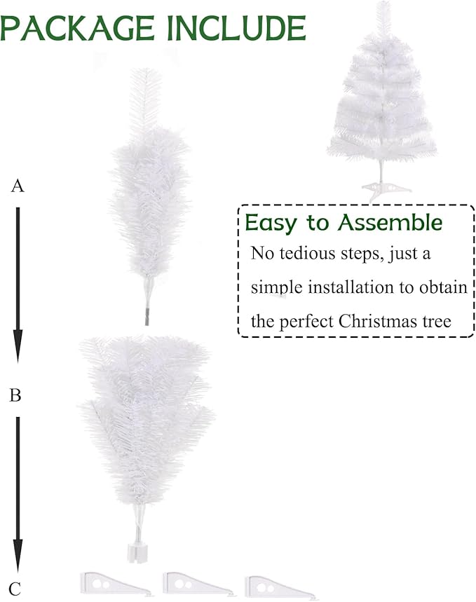 - EASY TO SET UP&STORAGE: Convenient to set up and store. You only need to install the base and splice the remaining two parts in sequence, patiently spreading the branches. Then you can get a beautiful tree. You can also add some ornaments to diy your own Christmas tree.