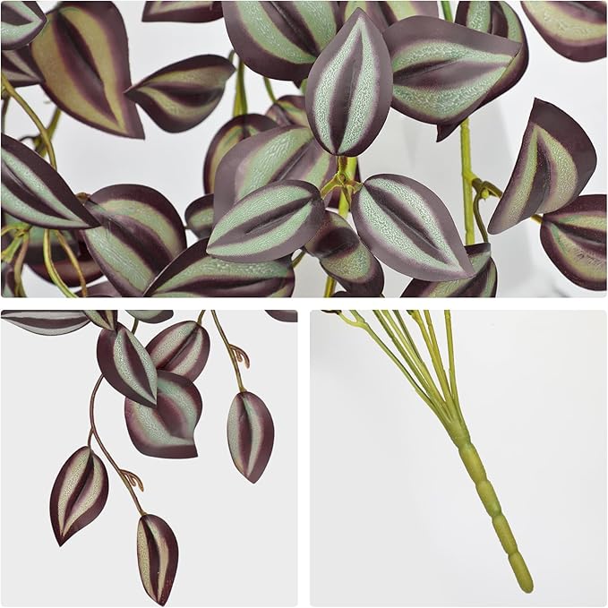- 🌱Lifelike & Vibrant - Each order includes 5 pcs Wandering Jew fake hanging plants. The plants lengths are 22". They boast a lifelike appearance with vibrant colors and realistic details, adding a touch of greenery to your small space year-round.